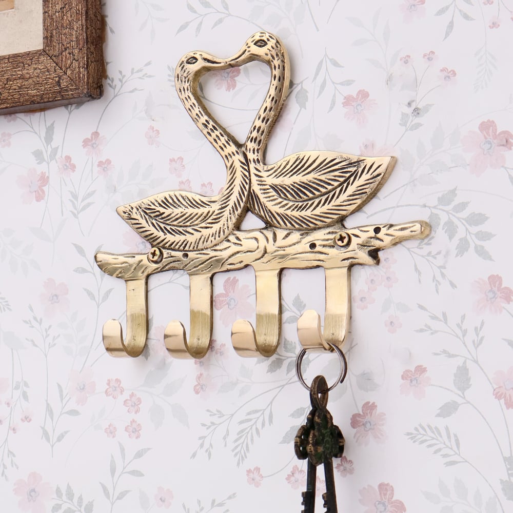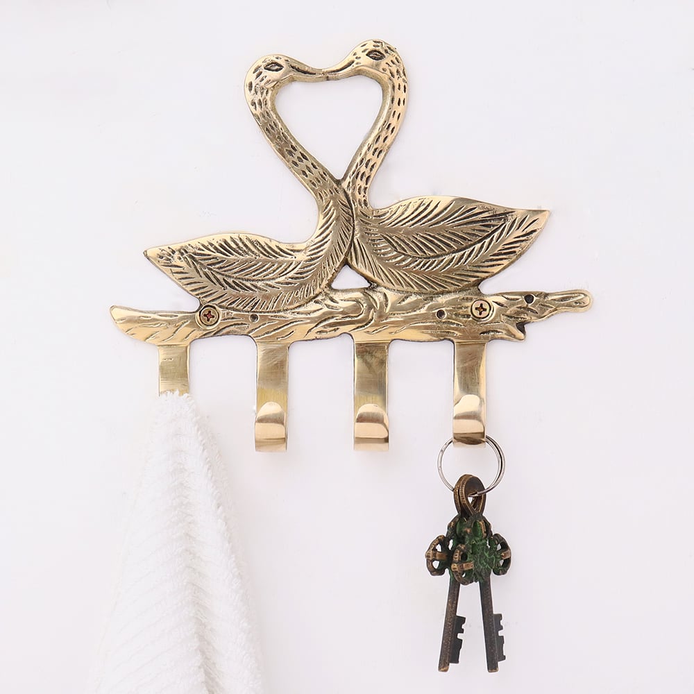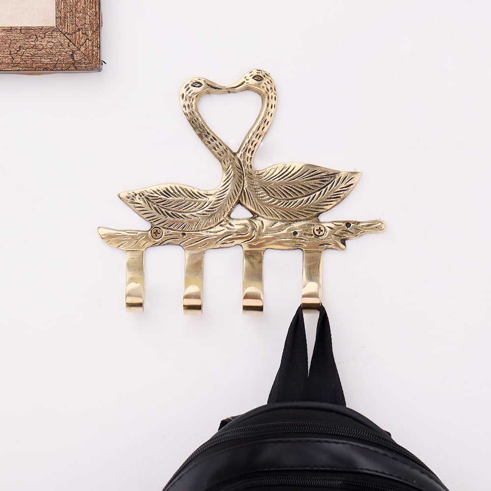 The Two Brass Swan with 4 Pegs Wall Hook is a refined blend of ornamental craftsmanship and daily functionality. Featuring two beautifully sculpted swans facing each other in a serene pose, this wall hook is cast from 100% solid brass and finished in a rich antique tone. Below the swans sit four evenly spaced pegs, offering practical storage in a form that feels like art. Inspired by the swan’s symbolism of grace, love, and harmony, this hook adds elegance and charm to any entryway, bedroom, or bathroom wall.