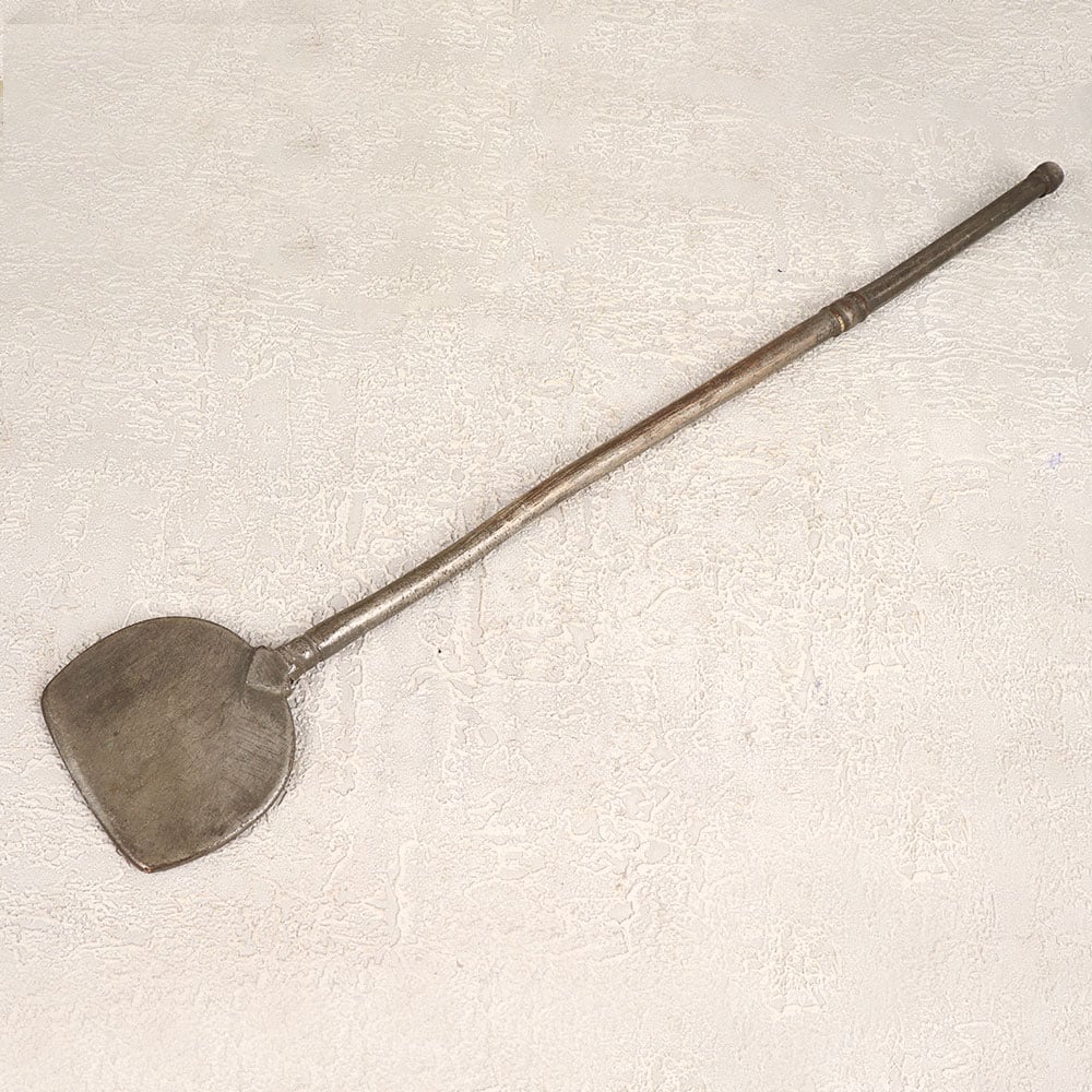 A Vintage Brass Cooking Flat Spoon which is a timeless piece that seamlessly blends functionality with aesthetic charm. Crafted by highly talented Indian artisans, this cooking utensil bears the hallmarks of traditional craftsmanship and is fashioned from high-quality brass. Boasting an antique grey finish, it exudes an air of vintage elegance that transports you to a bygone era of culinary artistry. While it was originally designed for culinary endeavours, we recommend repurposing this vintage treasure for decorative purposes only, preserving its historical allure. Whether adorning your home, office, restaurant, hotel, or cafe, this handmade spoon becomes a captivating focal point. Its antique patina and intricate detailing make it a perfect addition to any vintage collection. Give the gift of nostalgia by presenting this vintage brass spoon to your loved ones on special, festive, or auspicious occasions. With its unique blend of history, craftsmanship, and aesthetic appeal, this piece stands as a testament to the enduring beauty of artisanal creations.