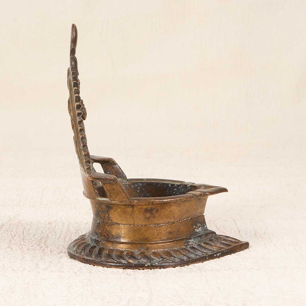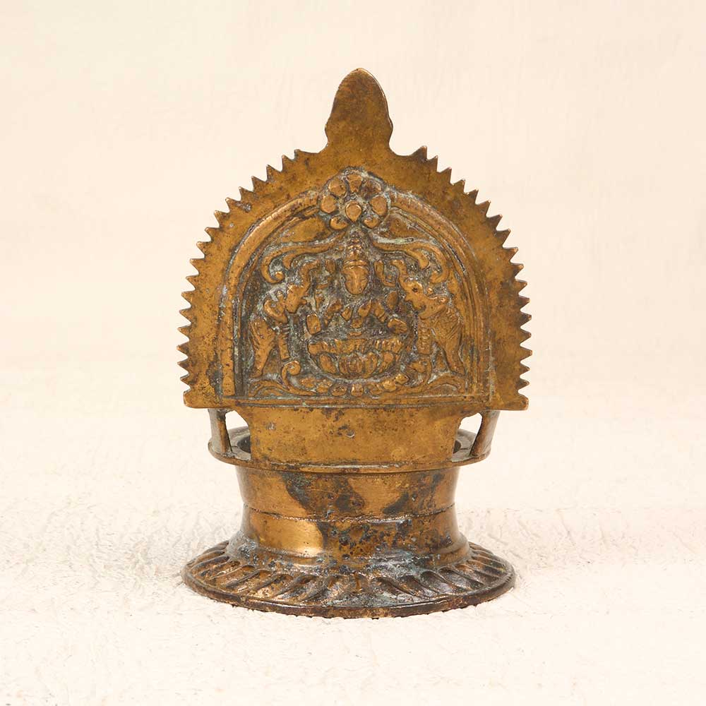 Step into the glow of ancient India with this stunning vintage brass Gaj Lakshmi oil lamp. Crafted with intricate detail, this lamp depicts the graceful Gaj Lakshmi, the Hindu goddess of wealth, good luck, and prosperity, sitting upon a regal elephant. Her poised elegance promises to light your home with the warmth of tradition. Capture the essence of India's rich cultural heritage every time you light this lamp. Display it prominently as a cherished heirloom passed down through generations. The Gaj Lakshmi lamp will infuse your living space with the timeless grandeur of the subcontinent. Give your home decor a touch of exotic flair and connect with India's ancient traditions.