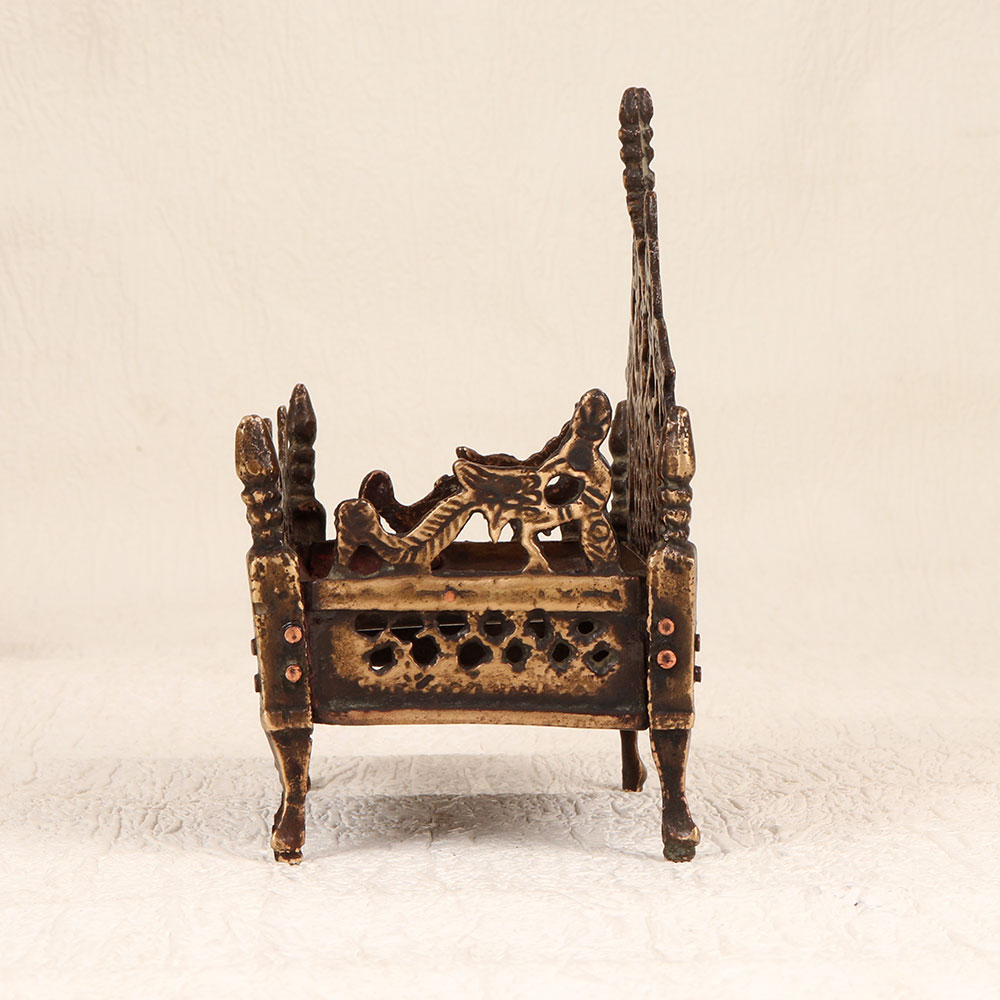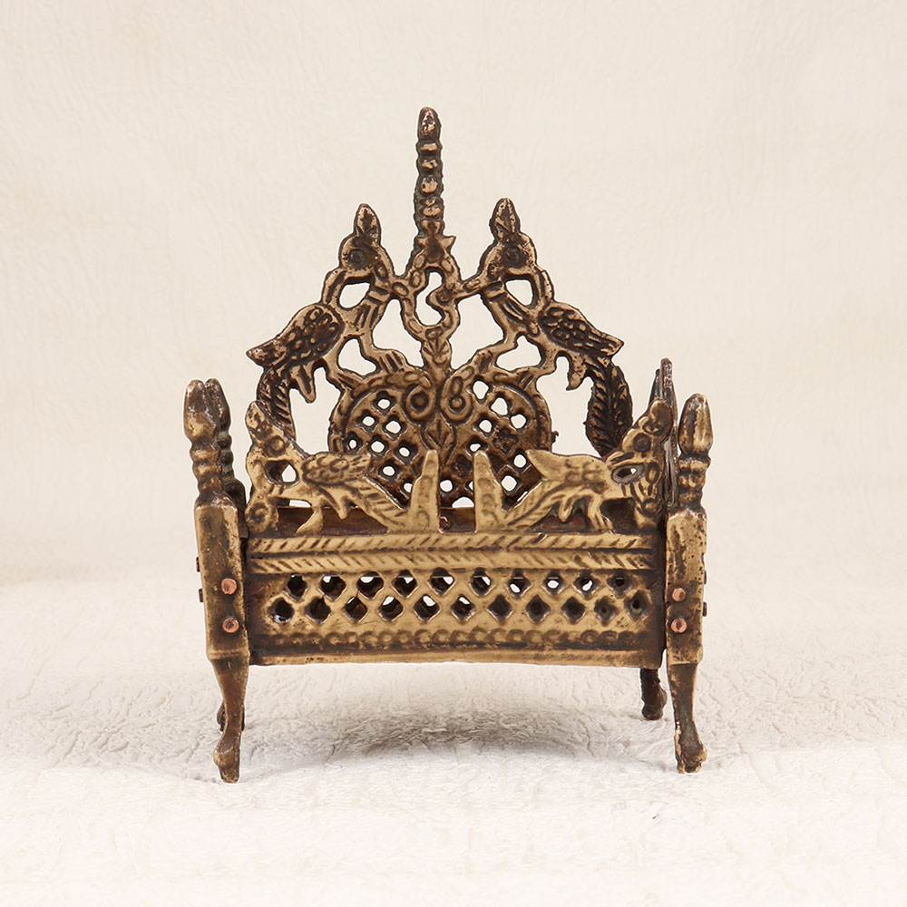 Buy a Vintage Brass God's Singhasan online that is a masterpiece meticulously handcrafted by talented Indian artisans. This celestial creation showcases an antique brown finish, reminiscent of a bygone era, adding an aura of timeless charm to any space. Crafted from high-quality brass, this Singhasan reflects the rich cultural heritage of India, embodying the craftsmanship of generations. The intricate detailing and traditional design make it a perfect addition to your home, office, restaurant, hotel, or cafe's prayer room, creating an atmosphere of spiritual serenity. The versatility of this piece extends beyond its sacred purpose; it seamlessly integrates into vintage collections, becoming a cherished symbol of artistry and devotion. The Singhasan's resplendent beauty transcends boundaries, making it an ideal gift for your loved ones on special, festive, or auspicious occasions. Whether as a token of appreciation or a gesture of divine blessings, this Vintage Brass God's Singhasan is a testament to the enduring traditions and the artistry that brings divinity into every detail.