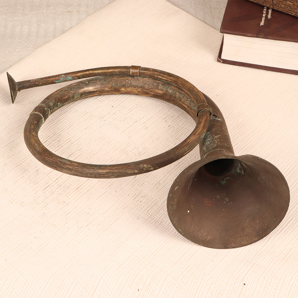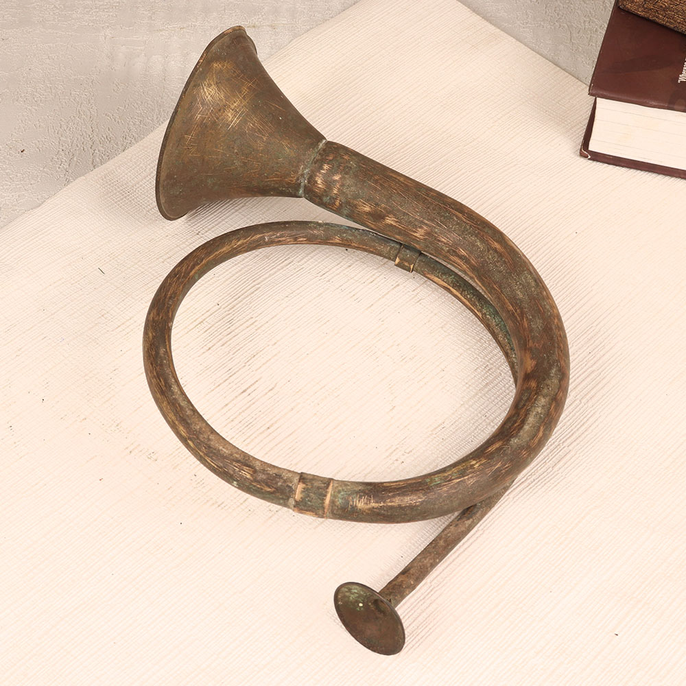 Enhance your decor with the timeless charm of our Vintage Brass Horn Bugle that is a masterpiece meticulously crafted by skilled artisans in the English Art tradition. This exquisite bugle boasts a rich antique brown finish, adding an air of nostalgia and sophistication to any space. Handmade with precision and care, the bugle is forged from high-quality brass, ensuring durability and a distinctive aesthetic. Its classic design and warm patina make it a versatile accent piece, suitable for adorning various settings, be it your home, office, restaurant, hotel, or cafe. Placed on a mantelpiece, shelf, or as a centerpiece, this bugle effortlessly becomes a conversation starter and a focal point of elegance. Perfect for collectors of vintage treasures, this bugle is a delightful addition to any antique ensemble. Moreover, it makes for an exceptional and thoughtful gift for your loved ones on special, festive, or auspicious occasions.