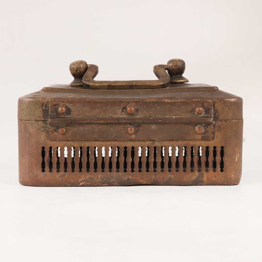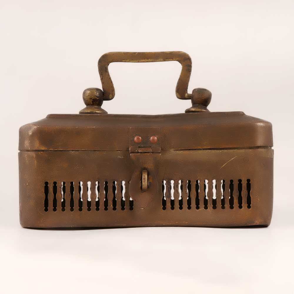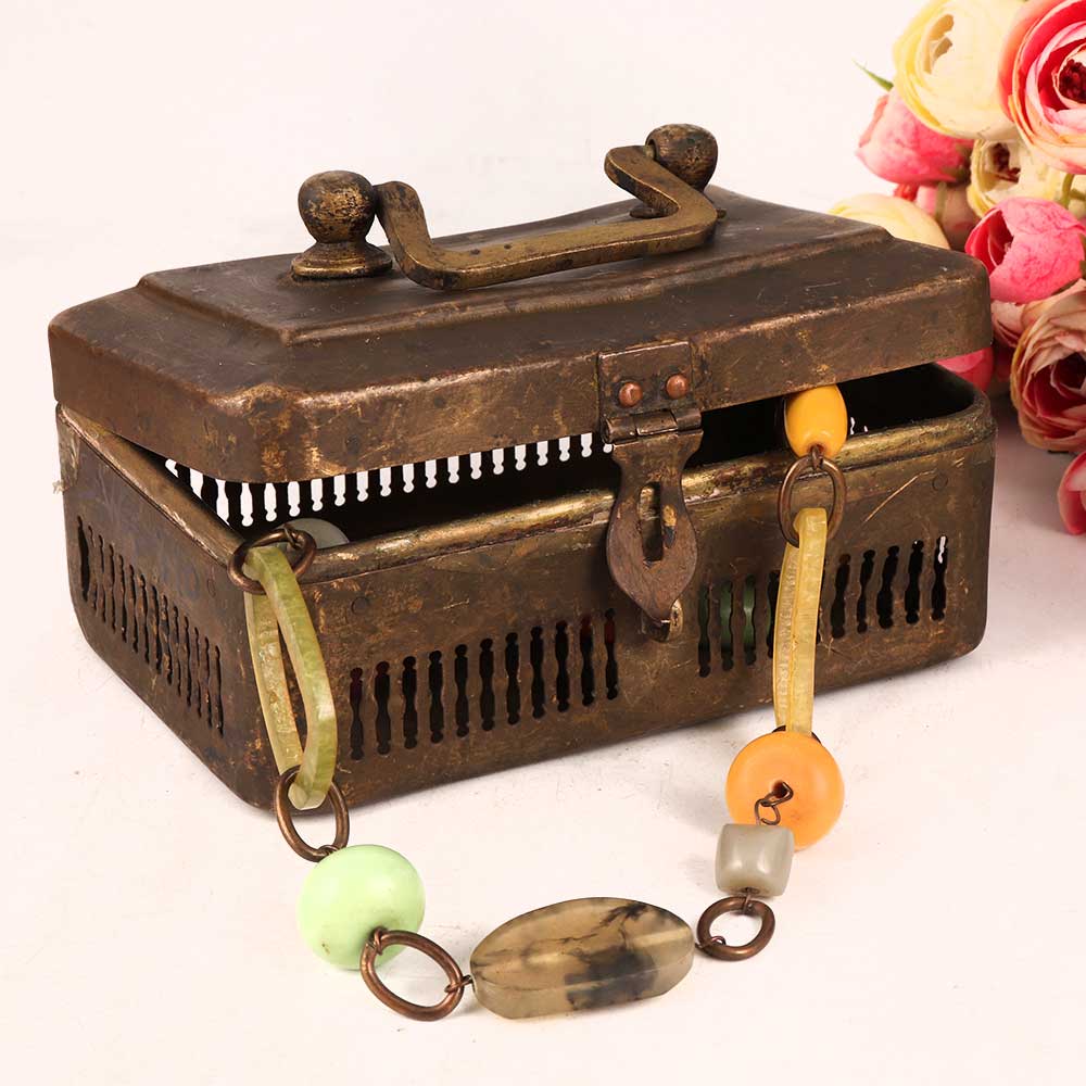 This Exquisite Vintage Brass Jewelry Box is an opulent piece of art meticulously handcrafted by highly skilled Indian artisans. This jewelry box exudes timeless charm with its beautiful engraving, accentuating the exterior, and a latch for secure closure. The antique brown finish adds an air of nostalgia, making it a standout piece that can seamlessly blend into any setting. Crafted from high-quality brass, this jewelry box boasts durability and elegance, showcasing the mastery of traditional metalworking techniques. Its top handle not only adds functionality for easy portability but also enhances its vintage appeal. Perfect for both decorative and practical purposes, this ornate jewelry box is a versatile addition to your home, office, restaurant, hotel, or cafe. Display it as an enchanting decoration, store your cherished jewelry, precious items, or stones securely, or even include it in your prized vintage collection. Furthermore, this exceptional piece makes for an unforgettable gift for your loved ones on special, festive, or auspicious occasions. Whether it's a birthday, anniversary, or celebration of a milestone, this Vintage Brass Jewelry Box is a heartfelt and memorable gesture that will be cherished for generations to come.