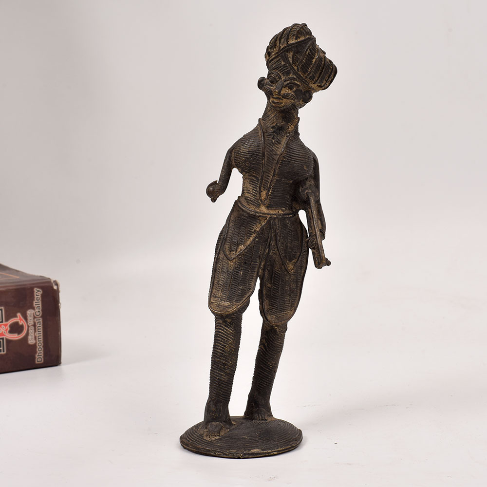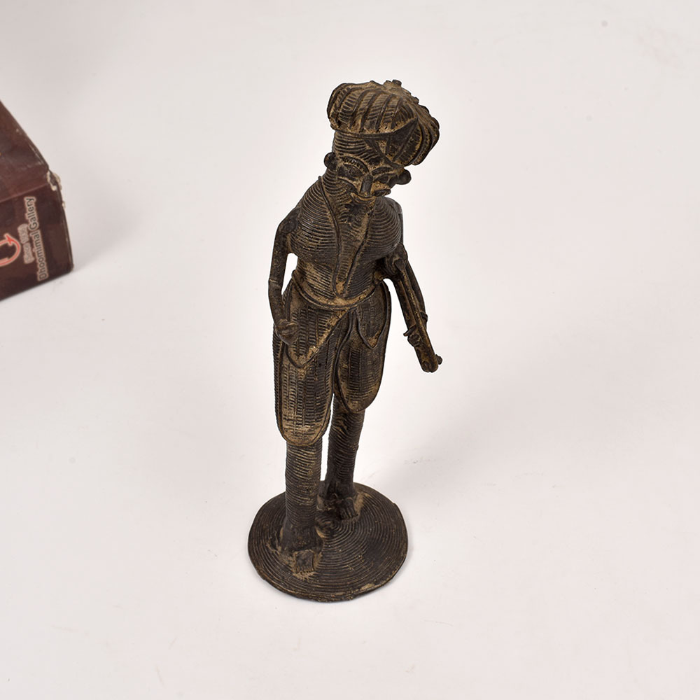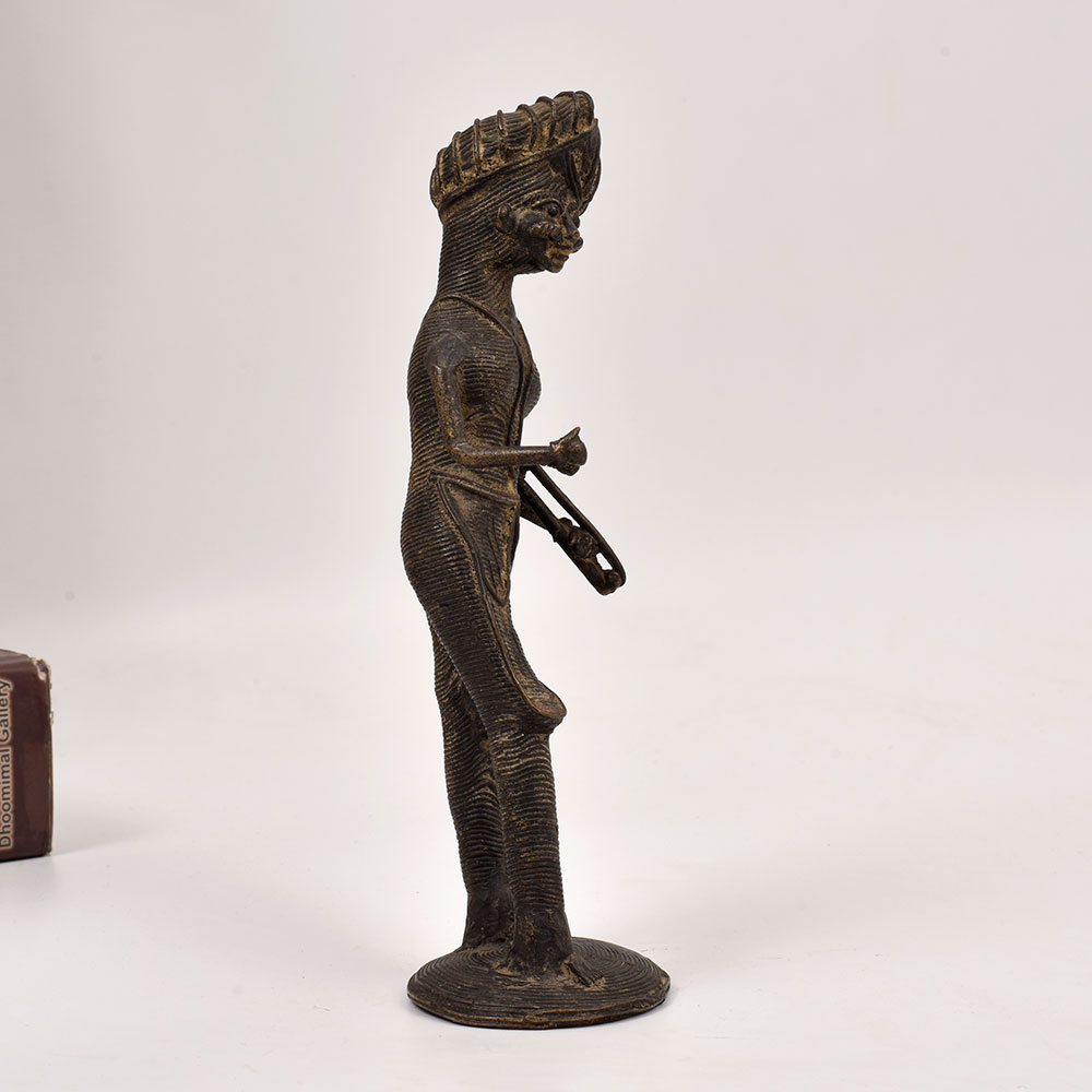 Discover the captivating essence of Odisha's vibrant tribal culture with this exquisite brass statue of a musician man holding a sarangi instrument. Meticulously crafted by skilled artisans, this stunning piece is a testament to the region's rich artistic heritage. This brass statue is more than just a decorative piece - it's a window into the soul of Odisha's vibrant cultural tapestry. The musician's captivating pose and the intricate detailing of the sarangi instrument evoke a sense of timeless artistry and musical expression. Display this stunning work of art in your living room, office, or any space that needs a touch of rustic elegance and cultural charm. Bring the enchanting melodies of Odisha's tribal music into your home and let this brass statue transport you to a world of rich tradition and artistic excellence. Elevate your décor and immerse yourself in the captivating essence of this remarkable piece.