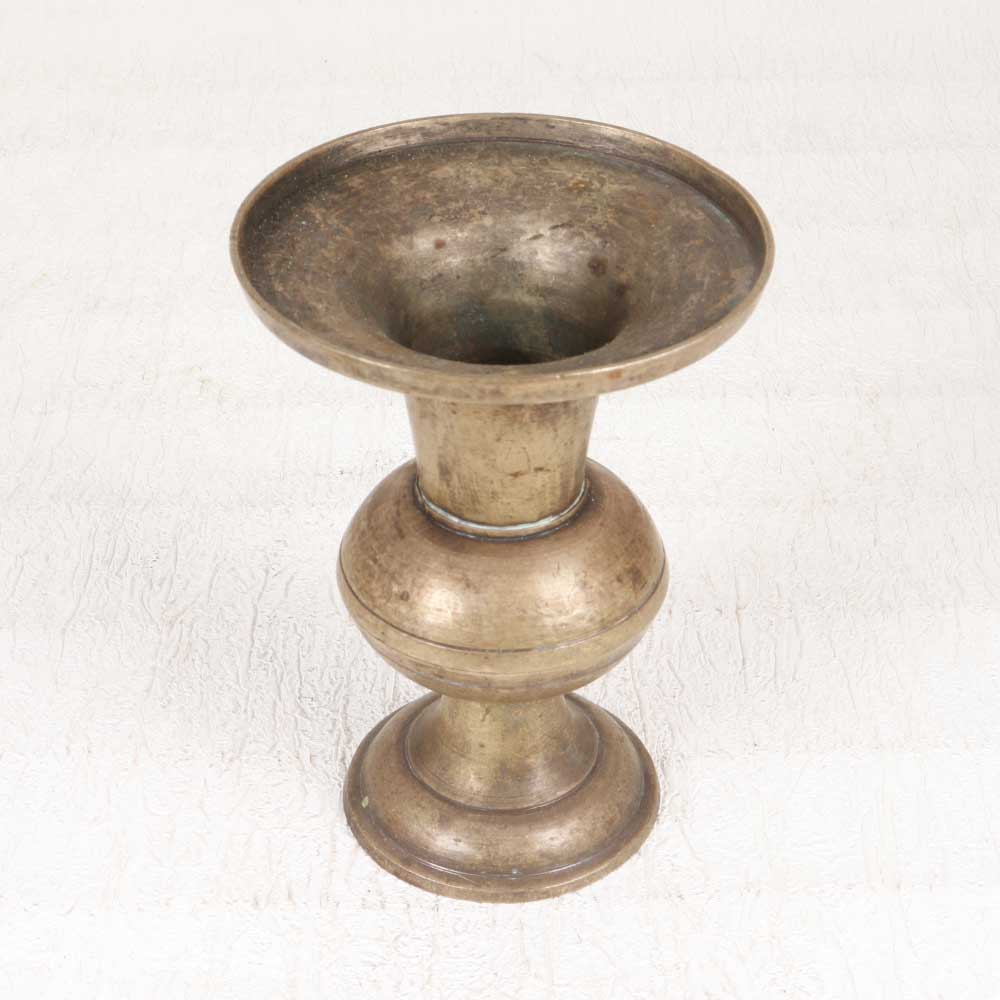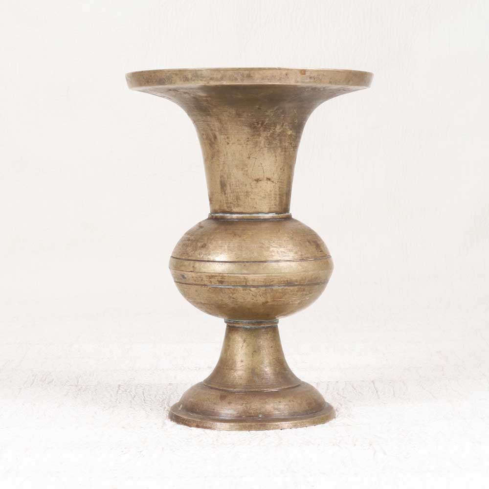 Add a vintage touch to your home decor with this stunning vintage brass pot. With its intricate hand-hammered design and rich brown patina, this pot is sure to be a conversation piece. This beautiful pot recalls the elegance of a bygone era. The smooth curves and detailed hammered design reflect the skill of talented South Indian metalworkers. Fill it with your favorite flowers or foliage to bring a touch of antique charm to any space. For those who love all things vintage, this pot is a must-have accent. The brown patina and hammered texture add visual interest and an artisanal feel to your home. Use it as a stand-alone decor piece or as a vase on an accent table or bookshelf. However, you display it, this brass pot is sure to be an elegant addition.