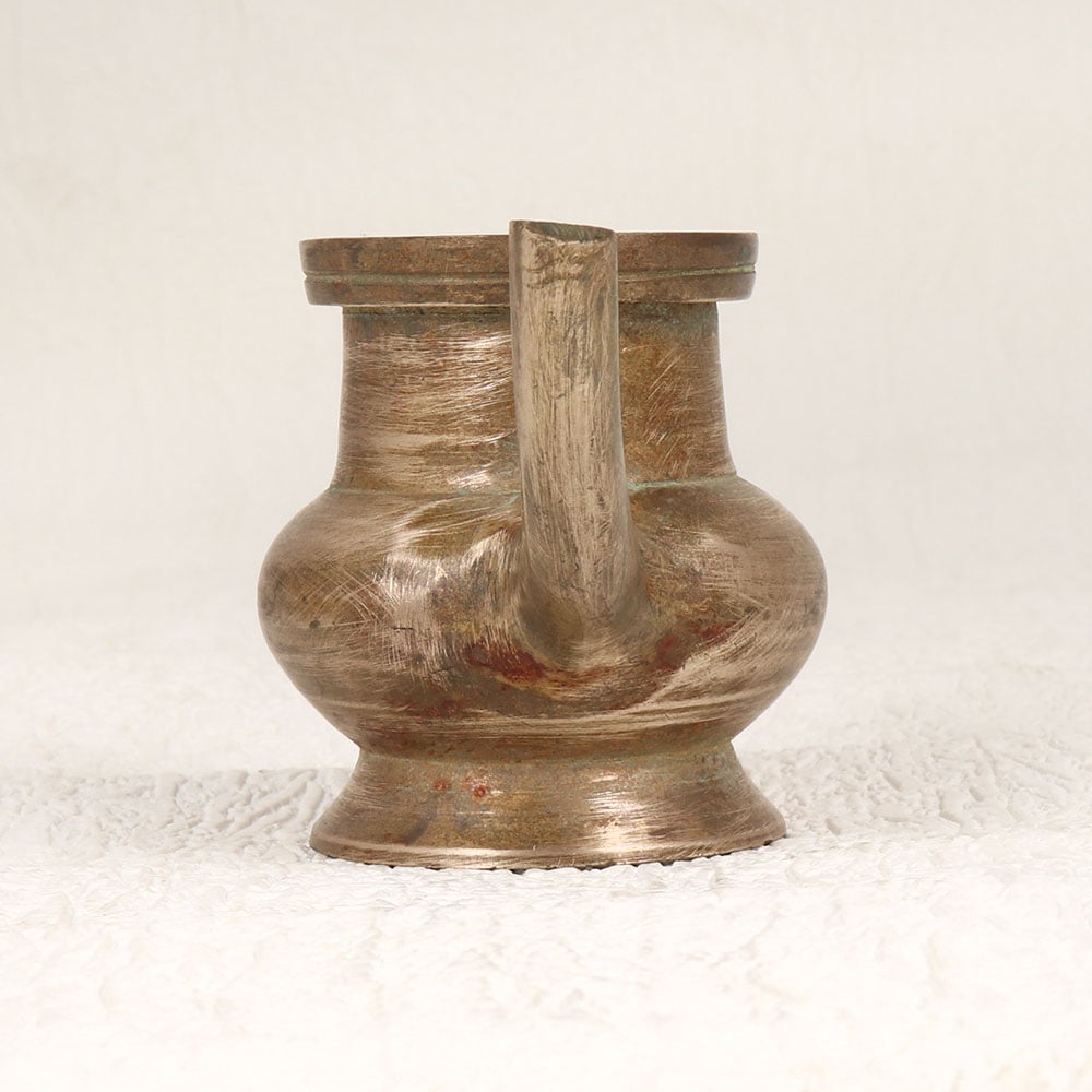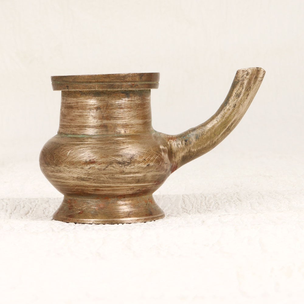 Immerse your sacred moments in timeless elegance with this exquisite Vintage Brass Pot. Handcrafted by skilled Indian artisans from South India, this masterpiece is a symbol of tradition and craftsmanship. Fashioned from high-quality brass, the pot boasts an antique brown finish that exudes an aura of antiquity, adding a touch of vintage charm to any space. With its spout designed for precision, this pot is a perfect vessel for holding holy water during prayers, rituals, and havans. Versatile in its application, it harmoniously blends spirituality and aesthetics, making it a graceful addition to home prayer rooms, offices, restaurants, hotels, or cafes. The pot serves both functional and decorative purposes, elevating the ambiance of any setting. A testament to the artisan's dedication, this brass pot is a collector's delight, offering a nostalgic glimpse into the past. Share the divine energy by gifting this exquisite piece to your loved ones on special, festive, or auspicious occasions.