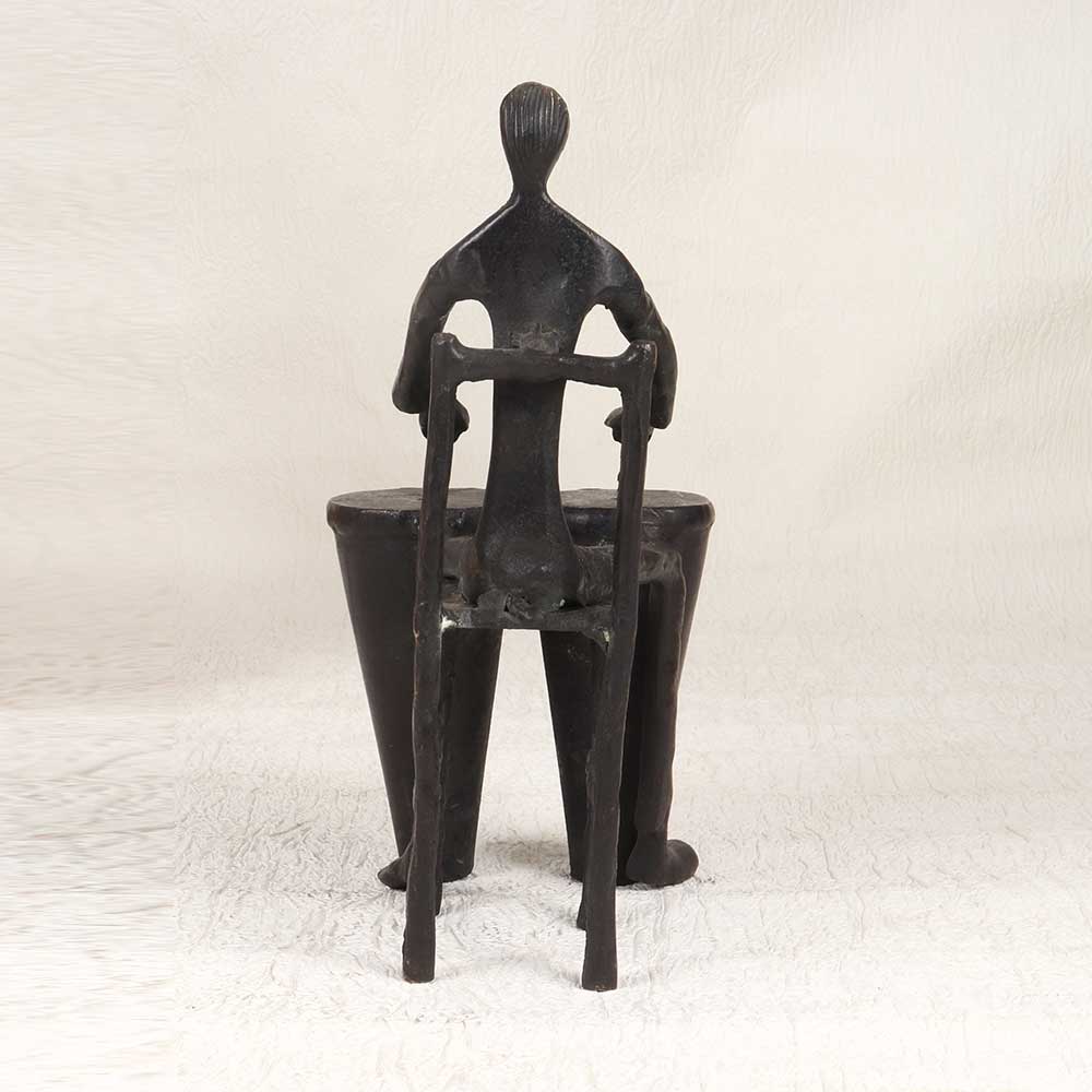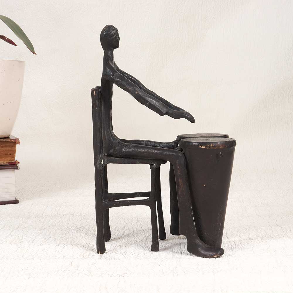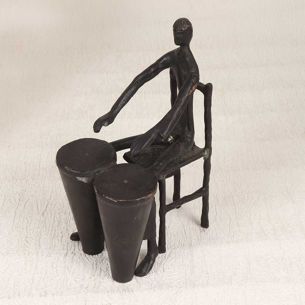 Bring the beat of the big band era home with this vintage brass musician statue. This finely detailed statue depicts a drummer in mid-solo, eyes closed as he pounds out a lively rhythm on his double bass drums. With intricate workmanship capturing every fold of his suit and the gleam of his instruments, this statue makes a striking decorative accent for any music lover. He wears a vintage three-piece suit with a vest and bow tie. In his hands are a pair of wooden drumsticks poised over two large bass drums. The drums, stool, and figure are all crafted from solid brass for lasting durability. For jazz fans, this vintage drummer statue is a marvelous conversation piece. Place it on a shelf, desktop, or tabletop to add bold style to your home. The polished brass finish will shine for years to come, honoring the iconic drummers of the big band and swing eras. Let this brass musician fill your home with rhythm and nostalgic musical charm.