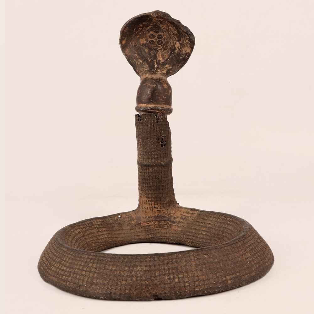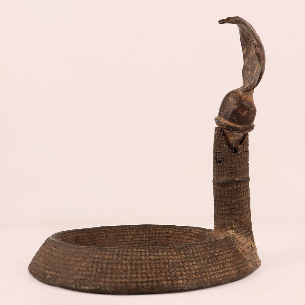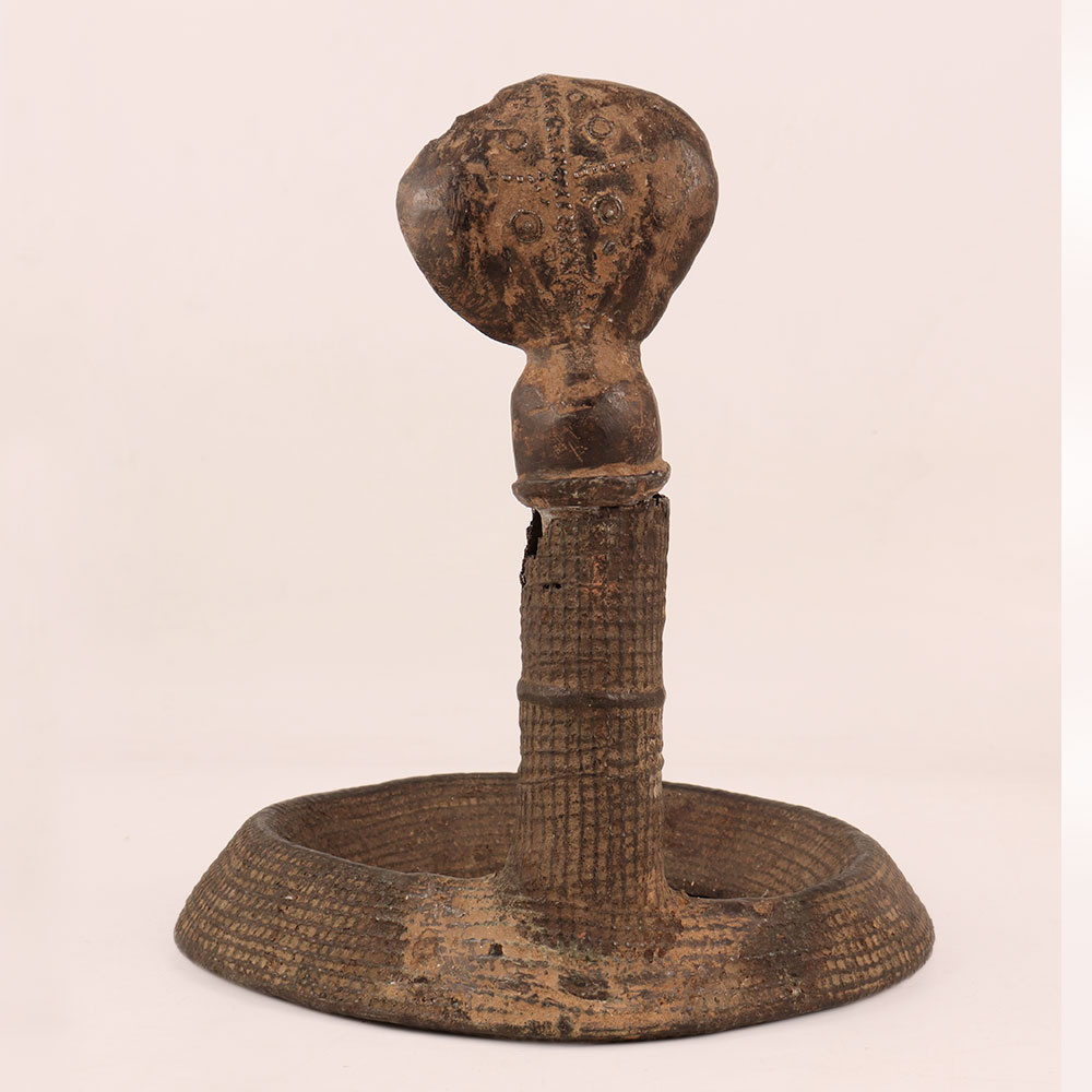 Elevate your spiritual space with the timeless elegance of this Vintage Brass Tribal Cobra, meticulously handcrafted by skilled Indian artisans at Naga Art. This exquisite piece, adorned in an antique brown finish, pays homage to Lord Shiva, making it a perfect addition to your worship area, whether at home, in your office, a restaurant, hotel, cafe, or shop. The cobra, a symbol of divine power and protection, is beautifully encased within a circular frame, creating a captivating visual focal point. Its vintage charm and intricate detailing make it an ideal addition to any collector's repertoire, adding a touch of mystique to your vintage collection. Not only does this exquisite piece hold spiritual significance, but it also doubles as a thoughtful gift for your loved ones during special, festive, or auspicious occasions. Its artisanal craftsmanship and rich history make it a unique and meaningful present that transcends time and tradition.