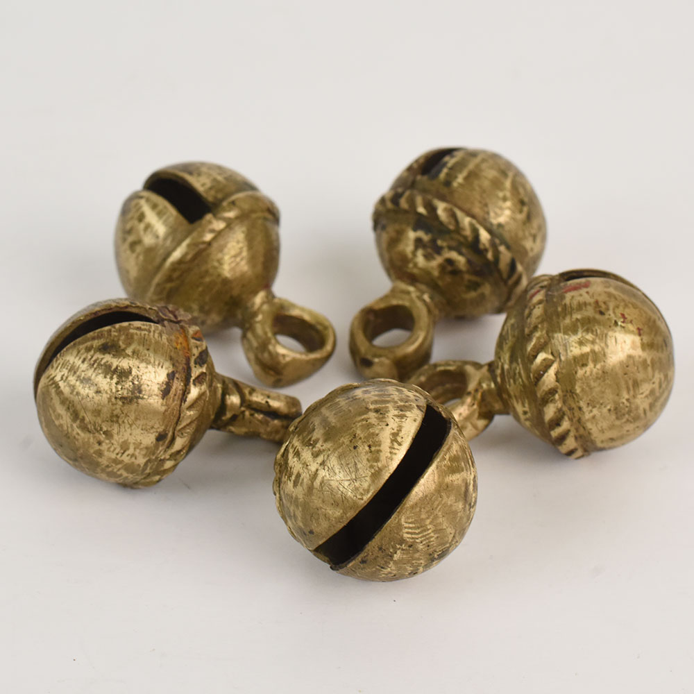 - Set of 5 handcrafted vintage cow bells from Northern India