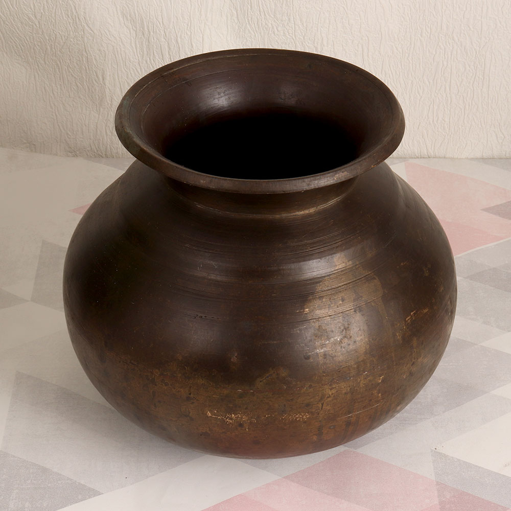 Buy a vintage brass cooking pot online that is meticulously handcrafted by talented Indian artisans in the renowned Assamese Art tradition. Made from high-quality brass, it exudes an authentic antique brown finish that adds a touch of timeless elegance to any setting. This versatile piece can be a stunning addition to your home, office, restaurant, hotel, cafe, or shop. Its allure lies in its dual functionality – while it once served as a utilitarian cooking vessel, today it has been repurposed as an indoor flower pot. Its resplendent vintage charm makes it the ideal choice for decoration purposes, serving as a focal point of beauty in any space. This vintage brass cooking pot is not just a decor piece; it's a collector's dream. Add it to your vintage collection and experience the nostalgia of a bygone era. It also makes for a thoughtful and sentimental gift for your loved ones on special, festive, or auspicious occasions.