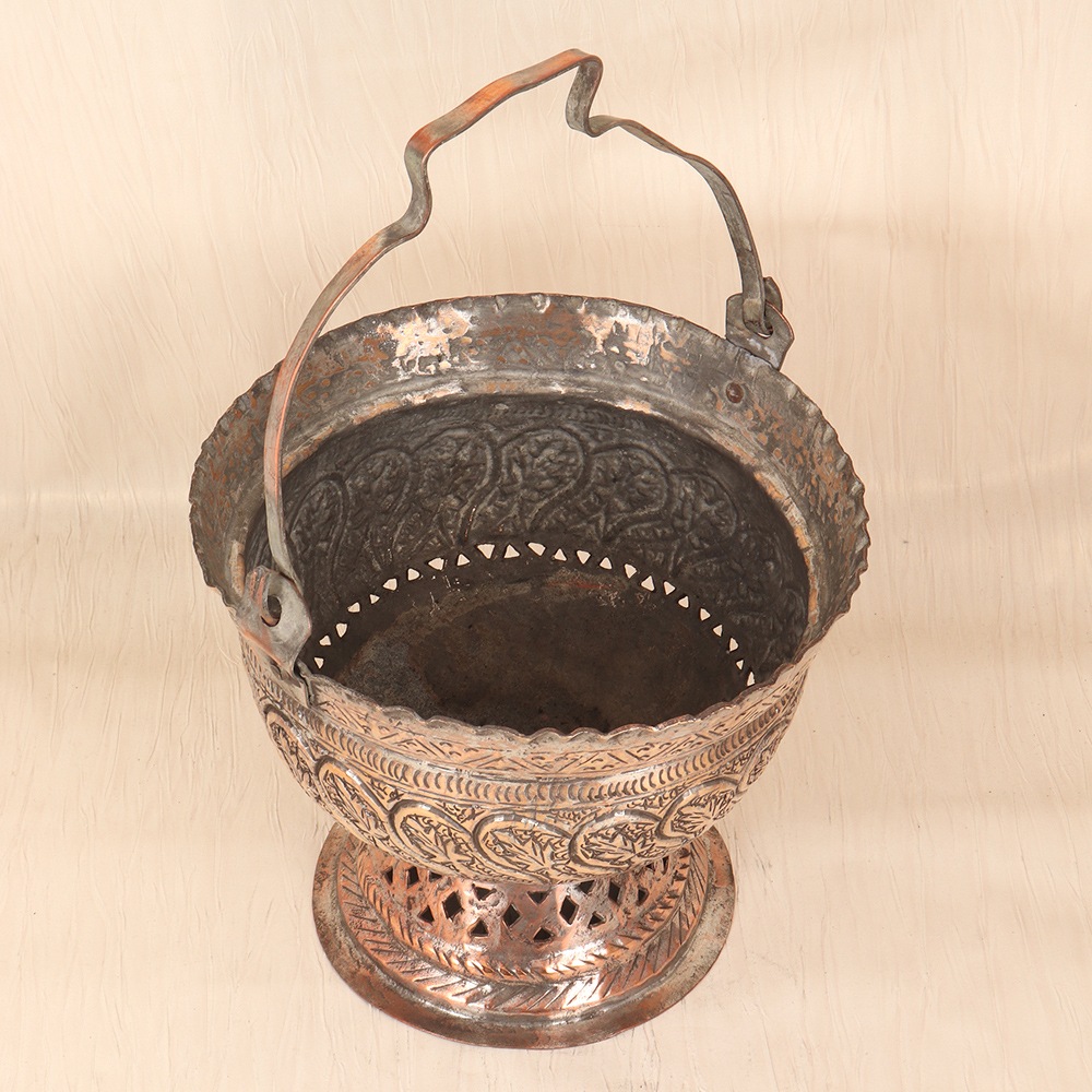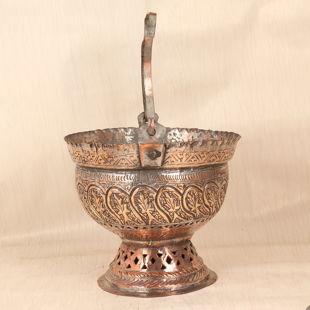Elevate your home with the captivating allure of our Vintage Copper Bucket. This exquisite piece is more than just a vessel - it's a work of art that transports you to the vibrant world of Islamic design. Infuse your space with the rich, warm tones of copper and the timeless elegance of Islamic art. This bucket is not just a functional item, but a stunning centerpiece that commands attention. Whether placed on a mantel, shelf, or side table, it will elevate the ambiance of any room, evoking the spirit of ancient Middle Eastern culture. Who is this for? The Vintage Copper Bucket is a must-have for design enthusiasts, art lovers, and those who appreciate the beauty of traditional craftsmanship. It's the perfect addition to homes, offices, or even boutique stores looking to create a refined, worldly atmosphere. Incorporate this piece into your decor and let it transport you to a realm of cultural wonder and timeless sophistication.