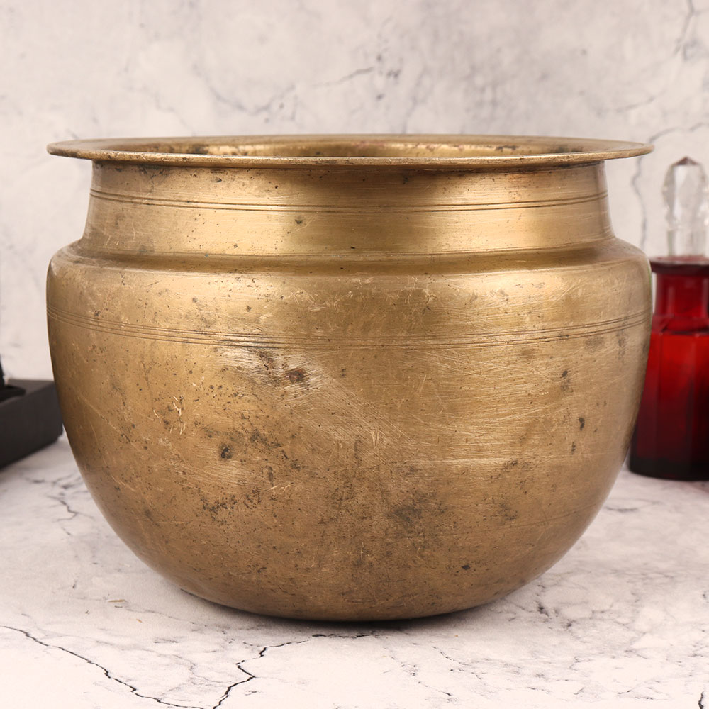 Enhance your home decor with the timeless elegance of our Vintage Brass Flower Pot that is a true masterpiece painstakingly crafted by skilled Indian artisans. This exquisite piece boasts an antique brown finish, meticulously applied to bring out the rustic charm that's reminiscent of a bygone era. It's a testament to the South Indian artistry that has been honed and passed down through generations. Handcrafted from high-quality brass, this flower pot exudes an air of sophistication and authenticity that's perfect for a wide range of settings. Whether you want to add a touch of class to your home, office, restaurant, hotel, cafe, or shop, this versatile piece promises to be a captivating focal point. Not just a stunning decorative item, it also functions as a flower pot, allowing you to display your favourite blooms in style. As an added bonus, it makes a remarkable addition to any vintage collection, making it a must-have for collectors with a penchant for classic beauty. Looking for a meaningful gift? This Vintage Brass Flower Pot is an ideal choice for your loved ones on special, festive, or auspicious occasions. It encapsulates the rich cultural heritage of India and the craftsmanship that continues to inspire awe around the world.
