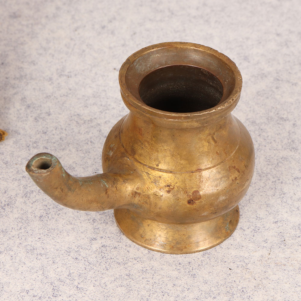Immerse yourself in the rich tapestry of tradition with our Vintage Brass Sagar Water Pot that is a timeless embodiment of artistry and spirituality. Handcrafted by skilled Indian artisans, this exquisite piece is made from high-quality brass, reflecting the craftsmanship passed down through generations. Its antique brown finish adds a touch of old-world charm, reminiscent of sacred rituals and prayers performed in temples. Designed with a graceful spout, the Sagar Water Pot is not merely a vessel but a conduit for spiritual connection. Its versatile presence extends beyond the temple, seamlessly fitting into homes, offices, restaurants, hotels, or cafes - enhancing prayer rooms or serving as a distinctive decoration piece. The pot's antique allure makes it a captivating addition to any vintage collection, evoking a sense of nostalgia and cultural richness. Celebrate special, festive, or auspicious occasions with a meaningful gesture by gifting this unique artefact to your loved ones.