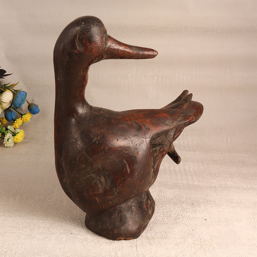 Add a touch of timeless elegance to your living or working space with this exquisite vintage wooden duck statue. Handcrafted by highly skilled and experienced artisans in the European Art tradition, this masterpiece boasts a rich history and unparalleled craftsmanship. Made from high-quality mango wood, this sculpture showcases the beauty of natural materials while featuring an antique golden finish that adds a touch of opulence. Its intricate details and artisanal handiwork bring a touch of nostalgia to any environment. Whether you choose to display it in your home, office, hotel, cafe, shop, or restaurant, this wooden duck statue serves as a stunning decoration that exudes a sense of sophistication and heritage. It's a perfect addition to your vintage collection, making it an ideal piece for exhibitions and displays. Furthermore, this wooden duck statue makes for a thoughtful gift to your loved ones on special, festive, or auspicious occasions, symbolizing not only beauty but also the enduring craftsmanship of European Art.