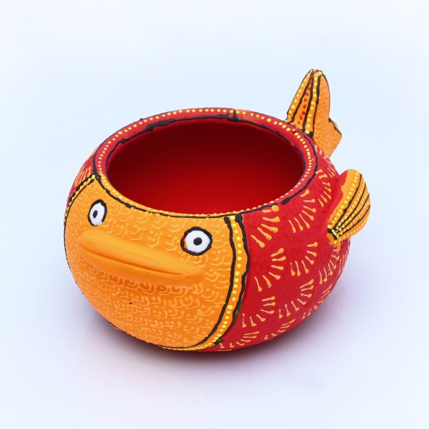 Celebrate light, culture, and artistry with this Handmade Red Terracotta Fish Diya. Shaped like a sacred fish, it represents abundance, positivity, and harmony in Indian tradition. The vibrant red finish adds warmth and festive charm, making it a perfect piece for puja rituals or home décor accents.