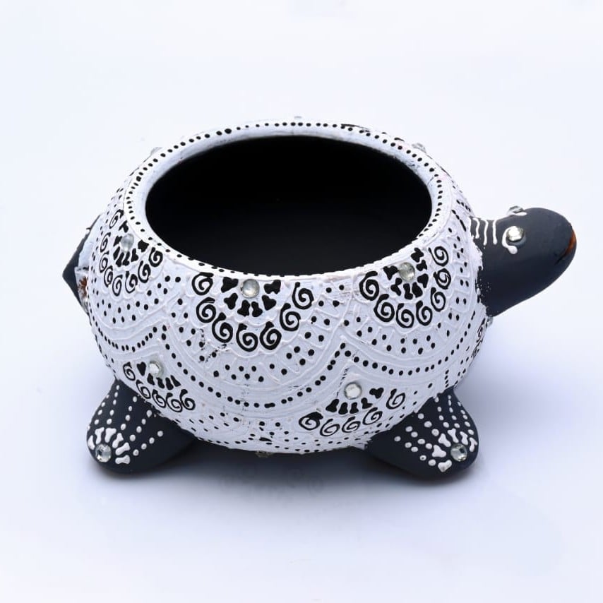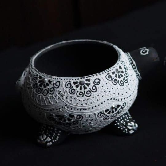 Bring a touch of tradition and symbolism into your home with this Handcrafted Terracotta Turtle Diya in White. Designed to embody strength, stability, and longevity, the turtle shape is a revered symbol in Indian culture. Its minimalist white finish adds a modern elegance, making it perfect for both festive rituals and contemporary décor.