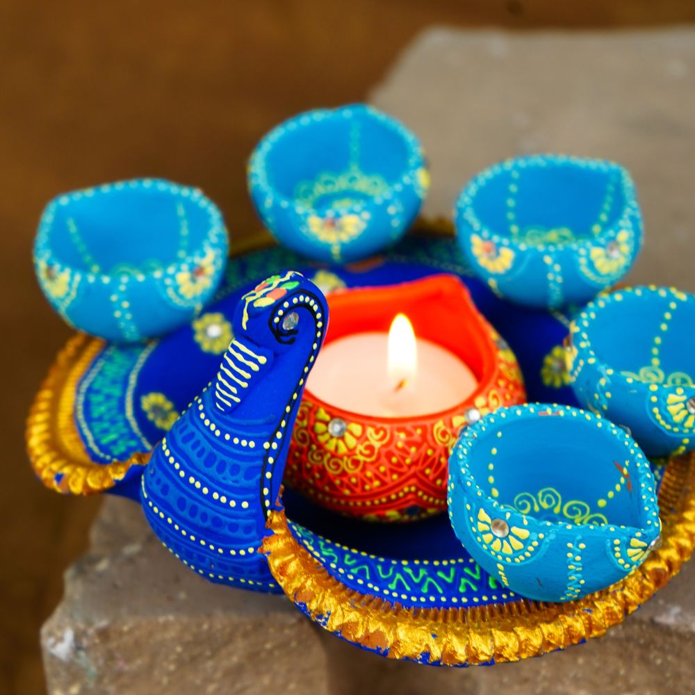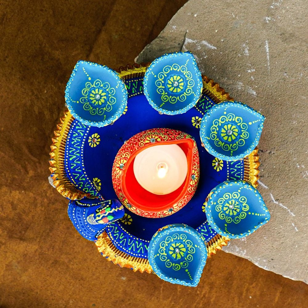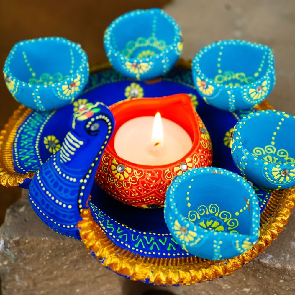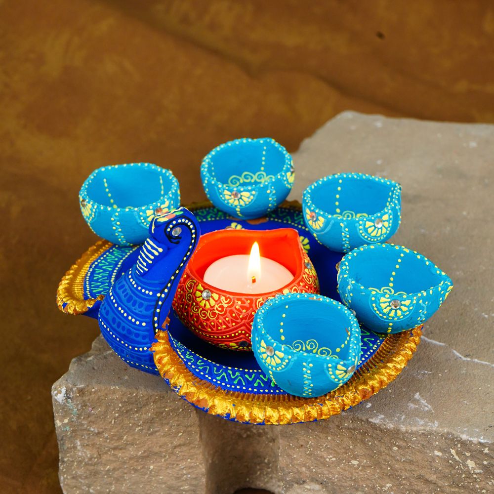 Add a striking accent to your décor with the Handmade Terracotta Bird T-Light Holder in Blue, crafted in a generous 6.3-inch size. Its bird-inspired design symbolizes peace and prosperity, while the vibrant blue finish makes it a statement piece for both festive and daily use. Ideal for creating soft ambient lighting, this handcrafted holder blends artistry with functionality.