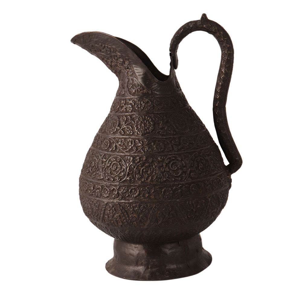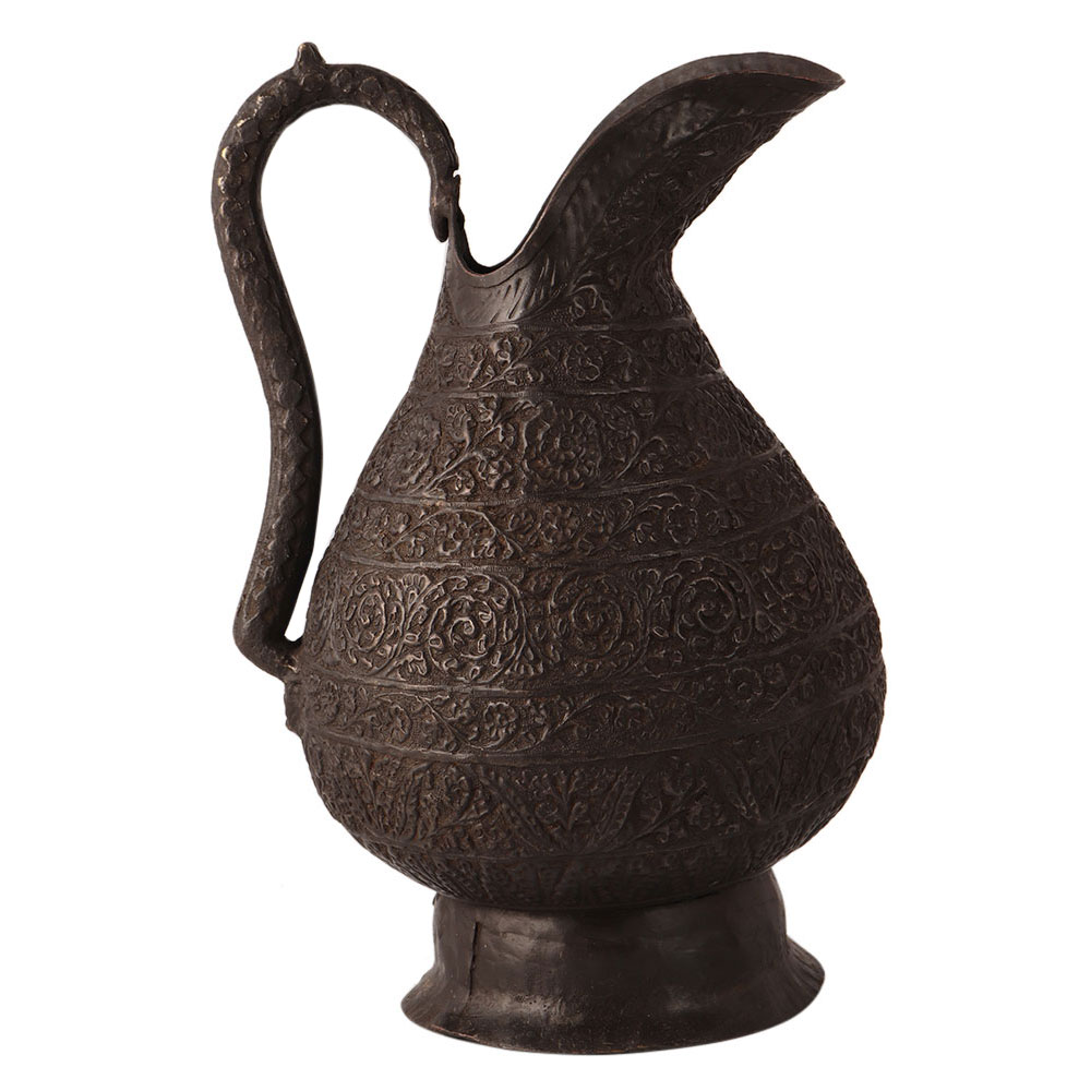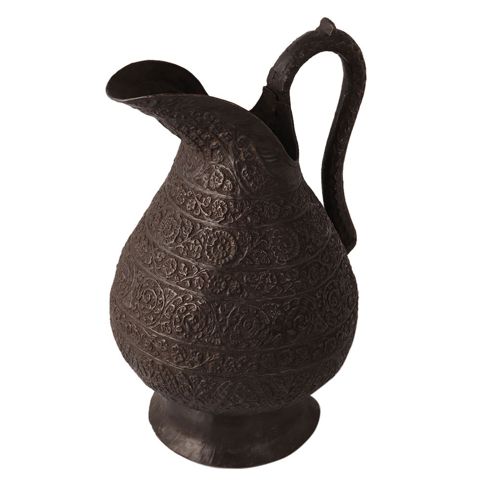 This handmade water jug is made of copper. It has floral patterns that represent Islamic art. It has a handle to grasp. This water jug has a large belly to hold holy water. It is perfect as a decoration for your home, office, stage, etc.
