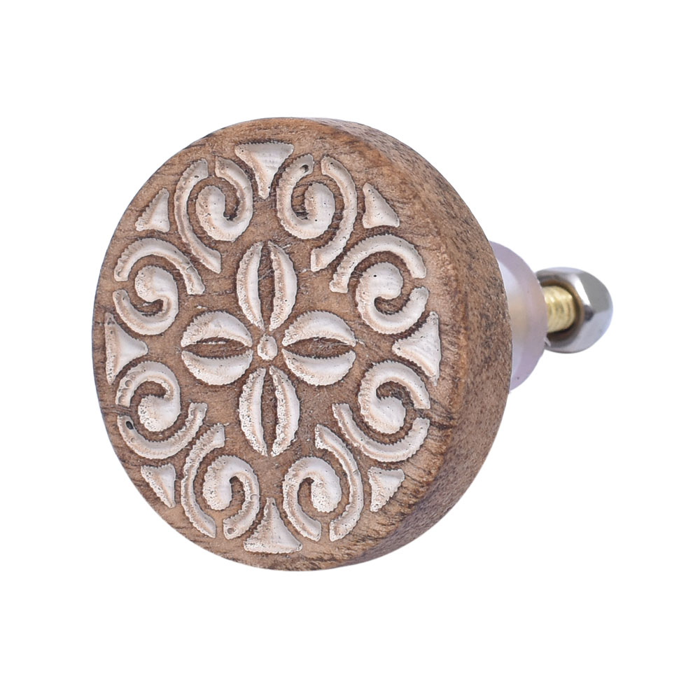 Enhance your furniture with the Handmade White and Brown Floral Wooden Round Cabinet Knobs. These stunning, hand-painted knobs showcase a detailed floral design in warm white and brown shades, providing a rustic and vintage flair to your cabinets, drawers, or doors. Ideal for refreshing furniture or adding a unique touch to any space.