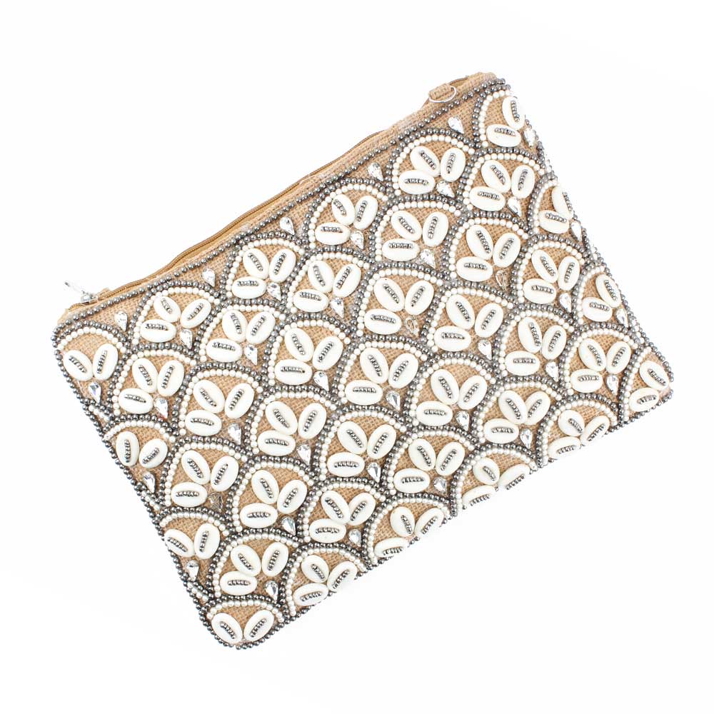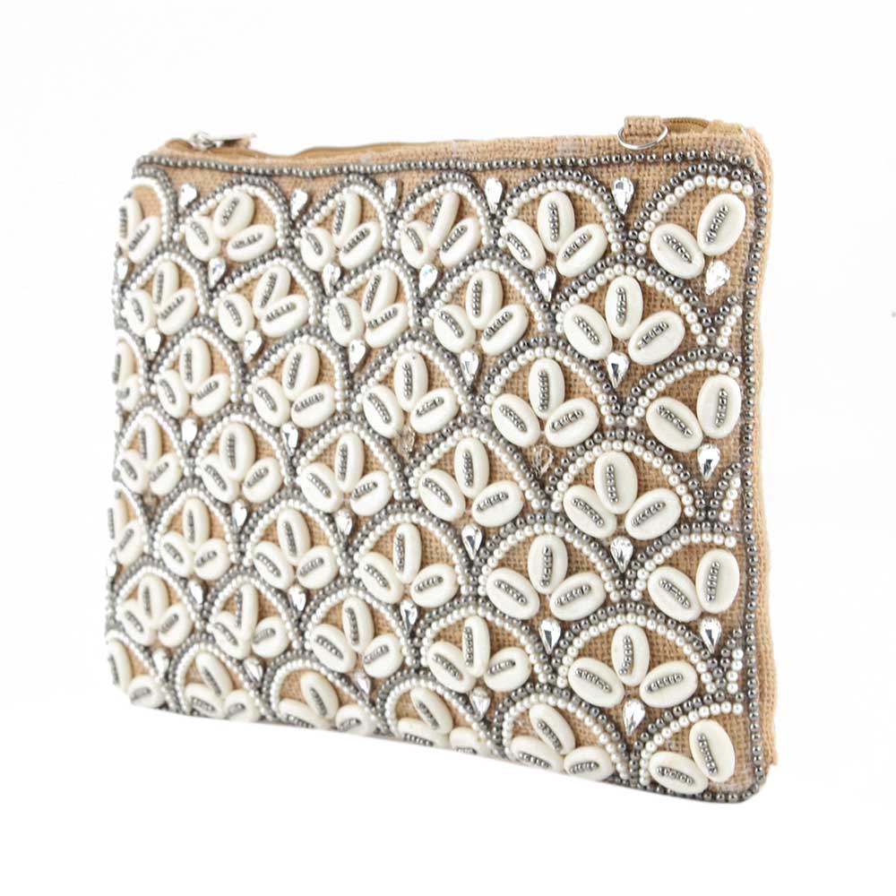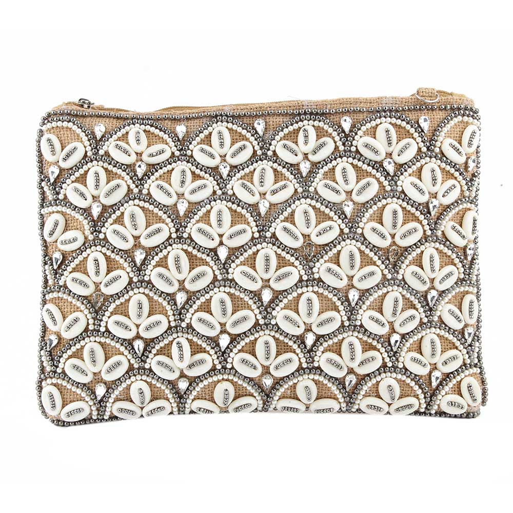 Appropriate for both Indian and Western outfits. The eye-catching designs of multi-shaped glass beads add to the grandeur of this natural white ladies beaded bag.