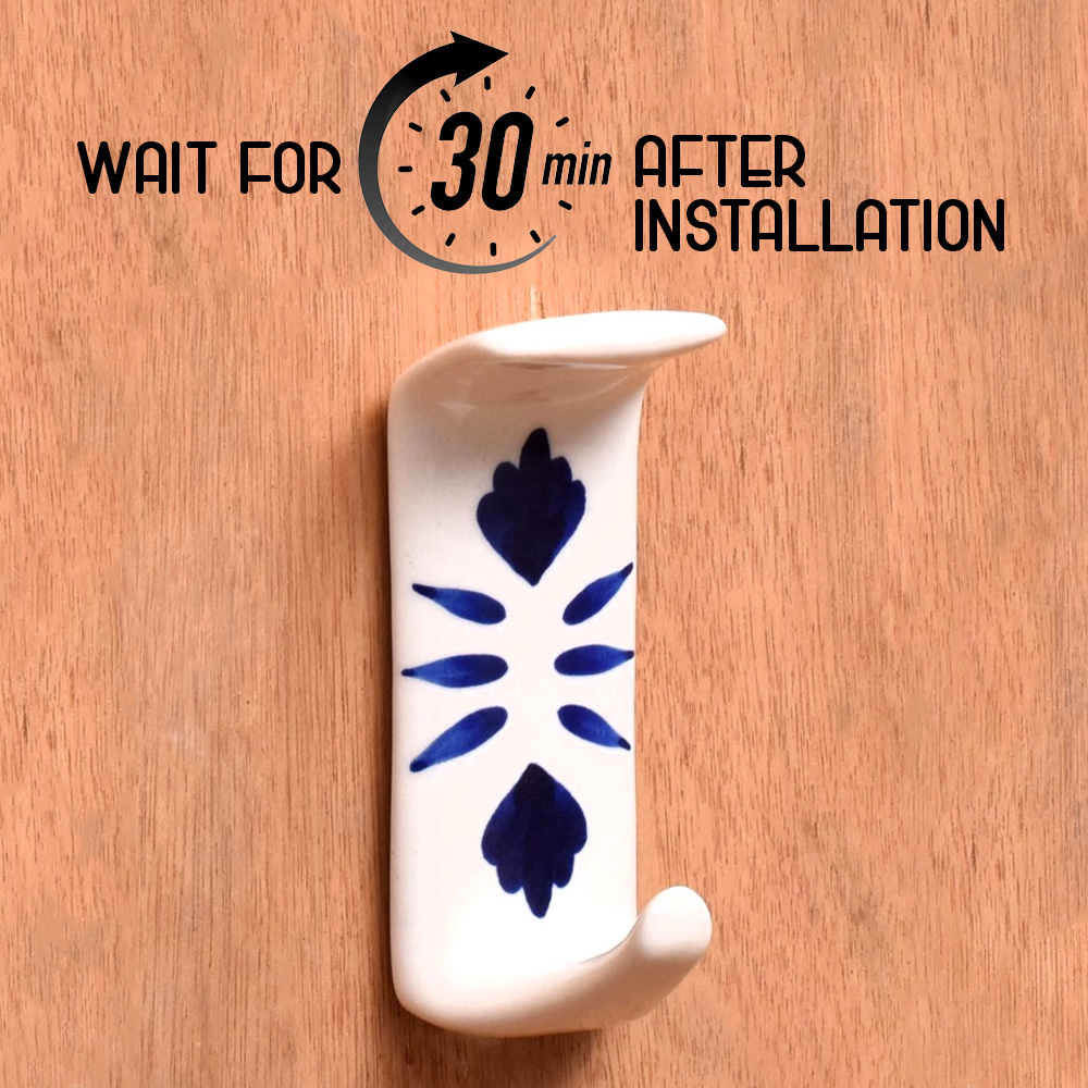 The Handmade White Ceramic Blue Floral Adhesive Hook includes an adhesive backing that allows for straightforward installation without drilling. Just peel off the protective film, stick the hook onto your chosen surface, and it’s ready to use. This makes it an excellent option for renters or anyone wanting to avoid wall damage.