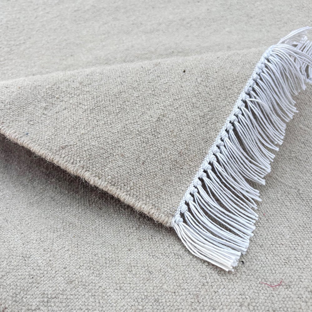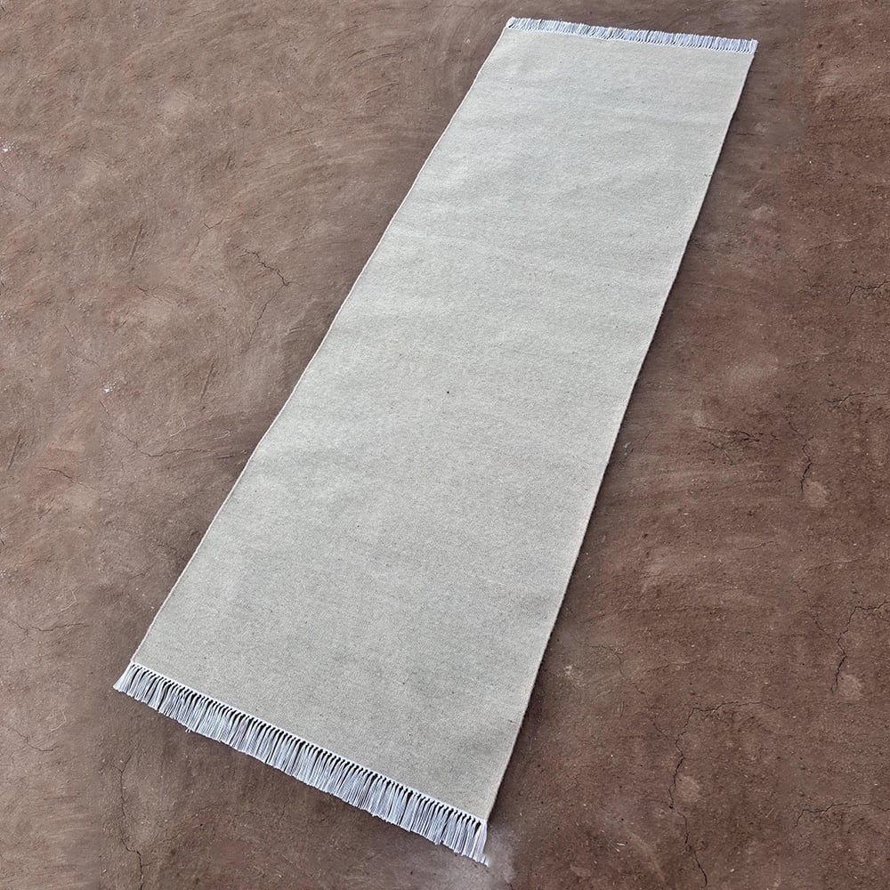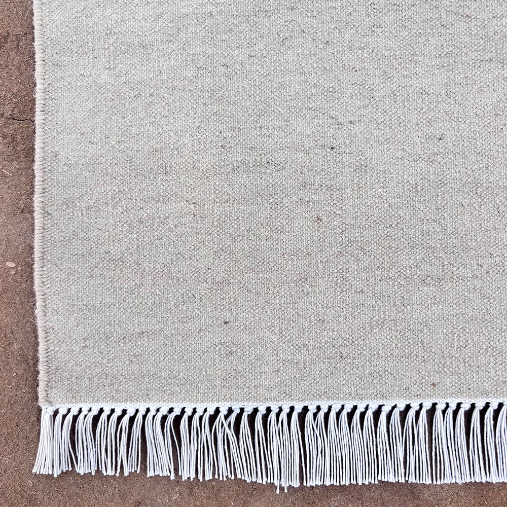 What colors are featured in this minimalist, flatweave design?