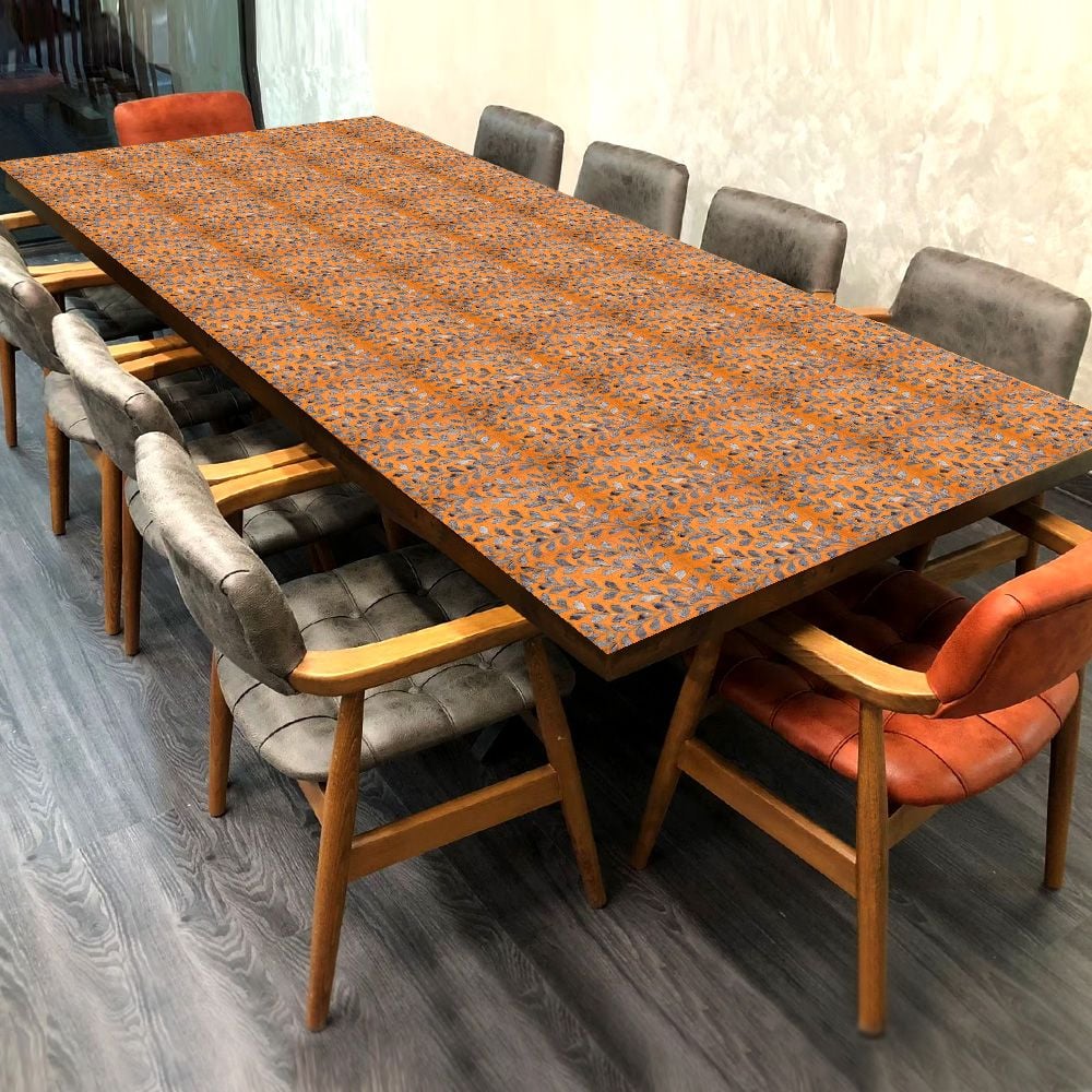 Introducing a stunning and captivating table top that combines the timeless elegance of wood, the modern touch of acrylic, and the exquisite beauty of resin. Handcrafted by skilled Indian artisans, this table top is a true masterpiece that will instantly draw attention. Its orange-coloured background sets a vibrant tone, while the intricately engraved gray leaf pattern adds a touch of sophistication. Not only does this high-quality table top protect your dining table, bedside table, or nesting tables from dust and scratches, but it also serves as a remarkable decorative piece. The blend of vibrant colours and beautiful designs creates a striking visual impact, making it a versatile addition to any home, office, hotel, or restaurant. Celebrate special or festive occasions with this exceptional gift, guaranteed to leave your loved ones in awe. With its impeccable craftsmanship and eye-catching aesthetics, this wood, acrylic, and resin table top is the perfect fusion of functionality and artistry. Transform your space with this remarkable creation and indulge in its sheer beauty and utility.