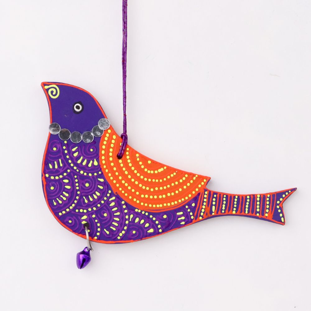 Add a touch of folk art charm to your interiors with this Handmade Wooden Bird Christmas Hanging, crafted with intricate detailing and bright colors. Each piece features traditional hand-painted patterns, mirror accents around the neck, and a delicate hanging bell that brings a soft, cheerful sound. The bird symbolizes positivity, joy, and freedom, making it a meaningful decorative accent for any space. Perfect for Christmass, balconies, kids’ rooms, or festive décor, this hanging is both elegant and versatile. Available in four lively colors - Red, Purple, Green, and Blue - you can buy them individually or as a complete set of 4 for a coordinated, vibrant look. Ideal for housewarming, festive gifting, or simply to brighten your home.