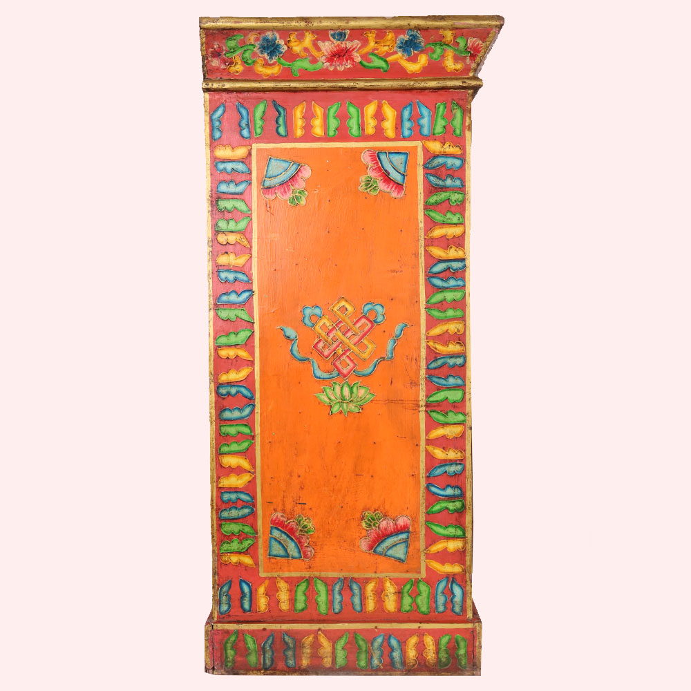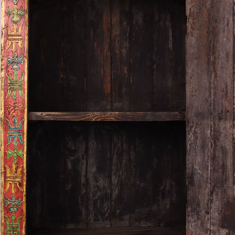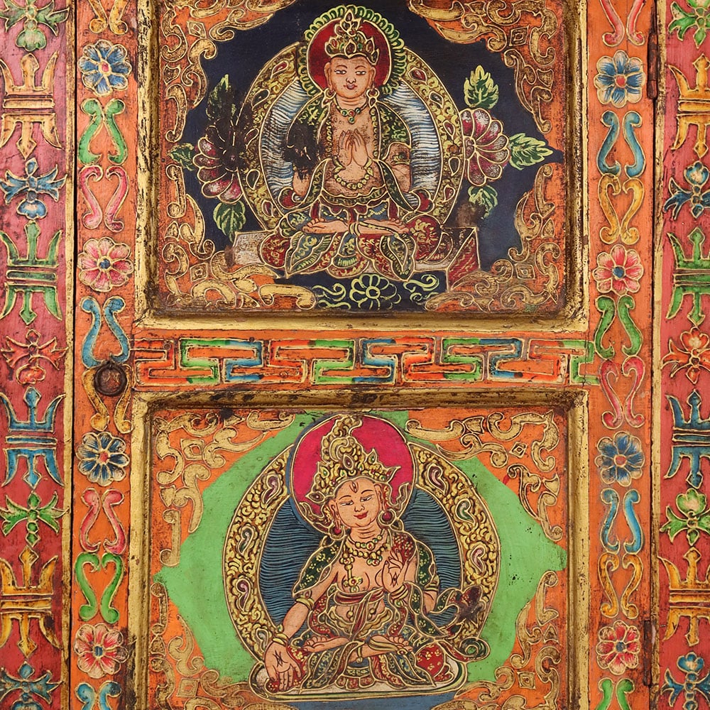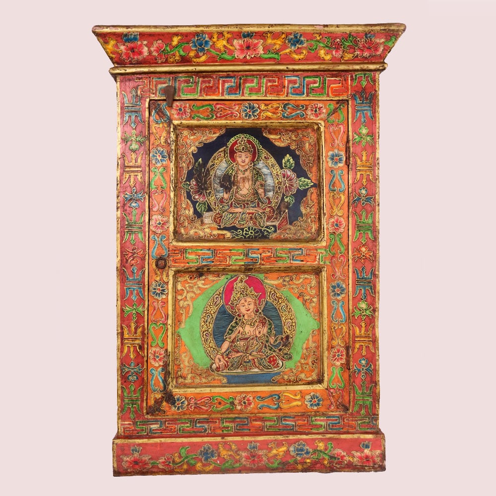 - Handmade wooden cabinet with dual deity paintings.