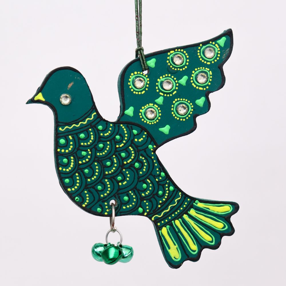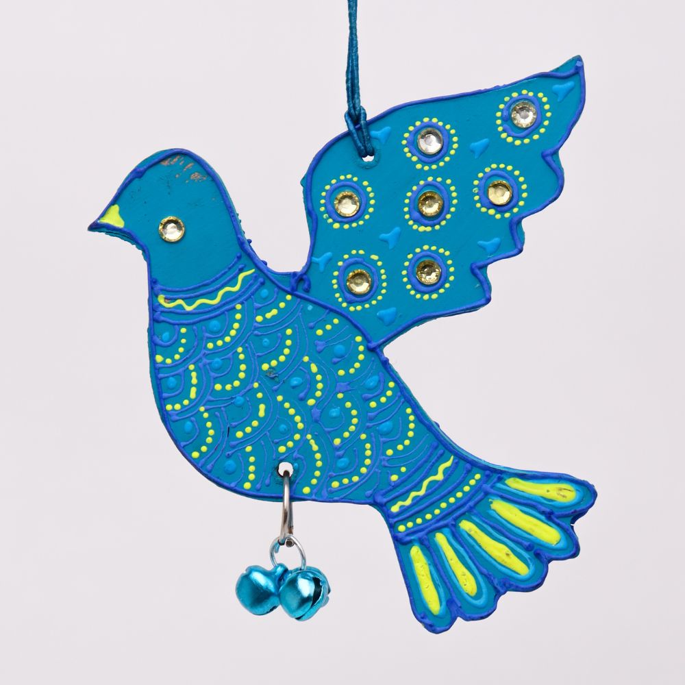 - Hand-painted wooden Dove Christmas hanging with bells and mirrors