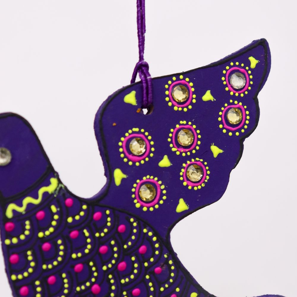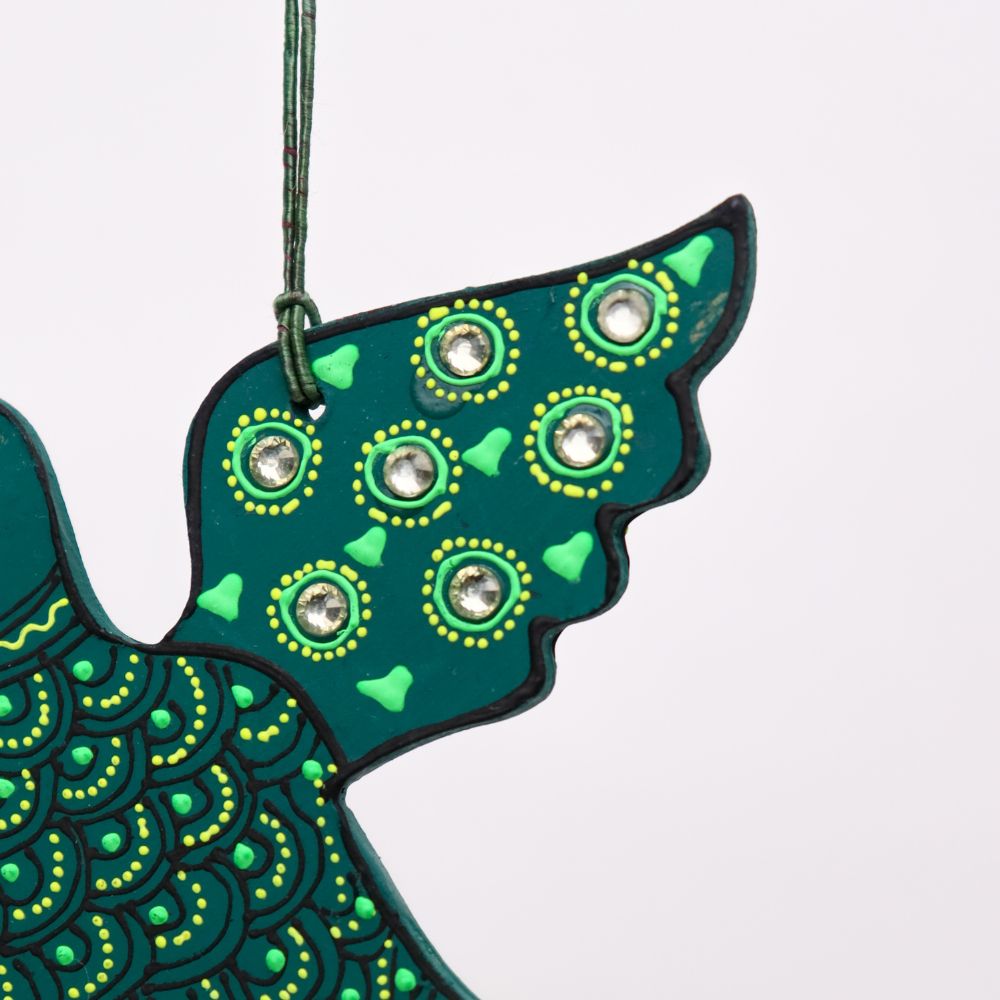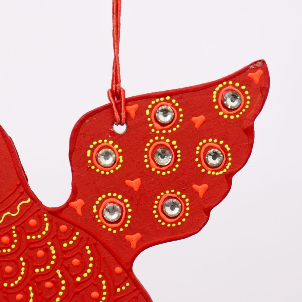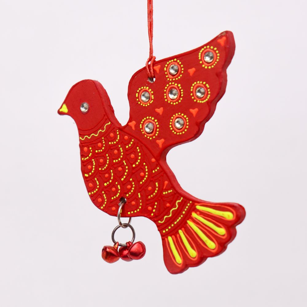 Celebrate art, culture, and peace with this Handmade Wooden Dove Christmas Hanging, crafted to bring a sense of harmony and charm into your home decor. Each Dove is hand-painted in vibrant shades with intricate detailing, mirror accents, and small bells that create a soft, musical tinkle. Symbolizing positivity and serenity, these Christmas hangings make a perfect addition to living rooms, balconies, kids’ rooms, or entryways. Available in four elegant colors - Purple, Green, Red, and Blue - you can purchase them individually or as a complete set of 4 for a coordinated, colorful display. Their artisanal design makes them equally suited for festive decoration or as thoughtful gifting options for housewarmings and special occasions.