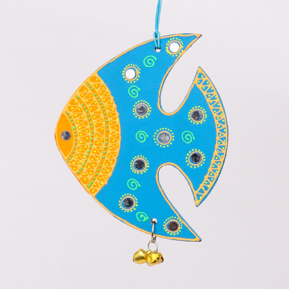 Add a vibrant touch of handcrafted artistry to your Christmass with this Handmade Wooden Fish Christmas Hanging, a unique decor piece that brings joy and elegance to any space. Each fish is carefully painted in bright colors with detailed patterns, mirror inlays, and hanging bells that create a soft, musical charm. Ideal for living rooms, balconies, children’s rooms, or entryways, these Christmas accents not only brighten up your interiors but also reflect the skill of traditional artisans. Available in four lively shades - Pink, Sky Blue, Navy Blue, and Purple - you can choose your favorite or bring home the complete set of 4 for a harmonious, colorful display.