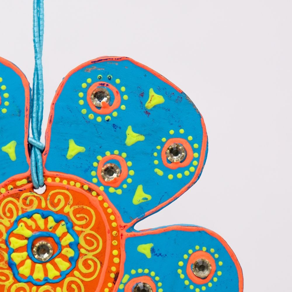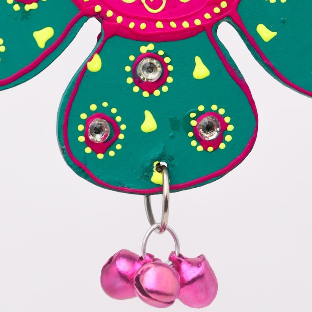 - Hand-painted wooden flower Christmas hanging with mirrors and bells