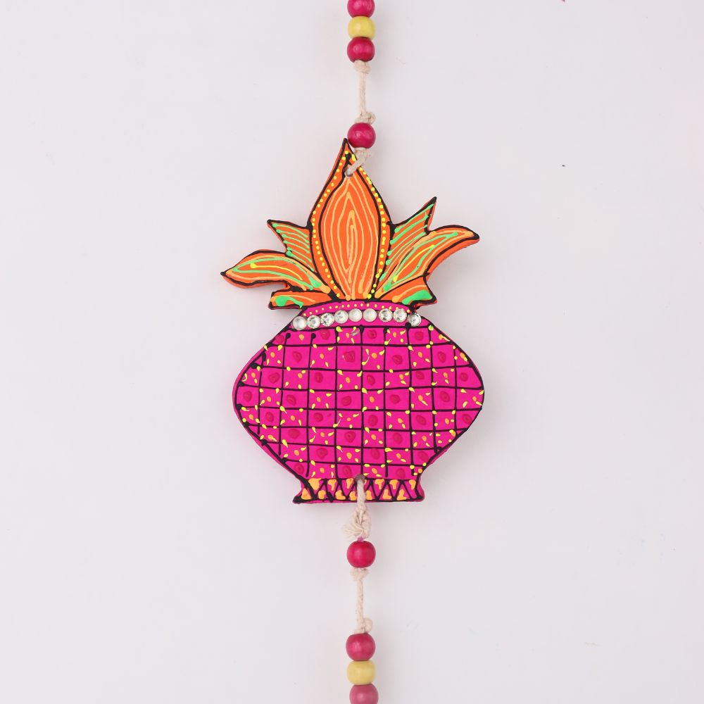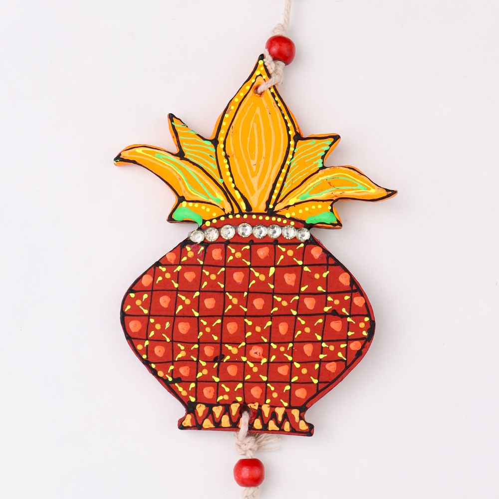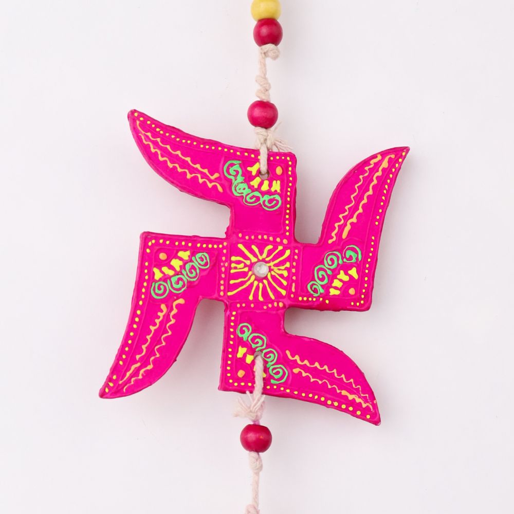 Bring divine charm and cultural artistry to your home with this Handmade Wooden Wall Hanging, featuring traditional motifs of Kalash, Swastik, and Lord Ganesha. Each piece is beautifully hand-painted with vibrant detailing, symbolizing prosperity, positivity, and blessings. Adorned with beads and bells, it creates a delightful festive vibe, making it a perfect addition to entrances, living spaces, temples, or gifting during special occasions. This wall hanging is available in two striking colors - Pink and Red, and also comes as a set of 2 to complement any decor style.