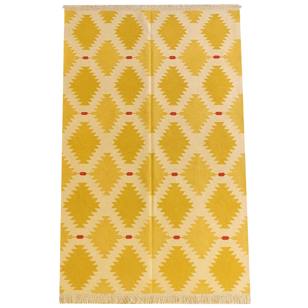 • Handmade Yellow Cotton Minimalist Dhurrie For Living Room