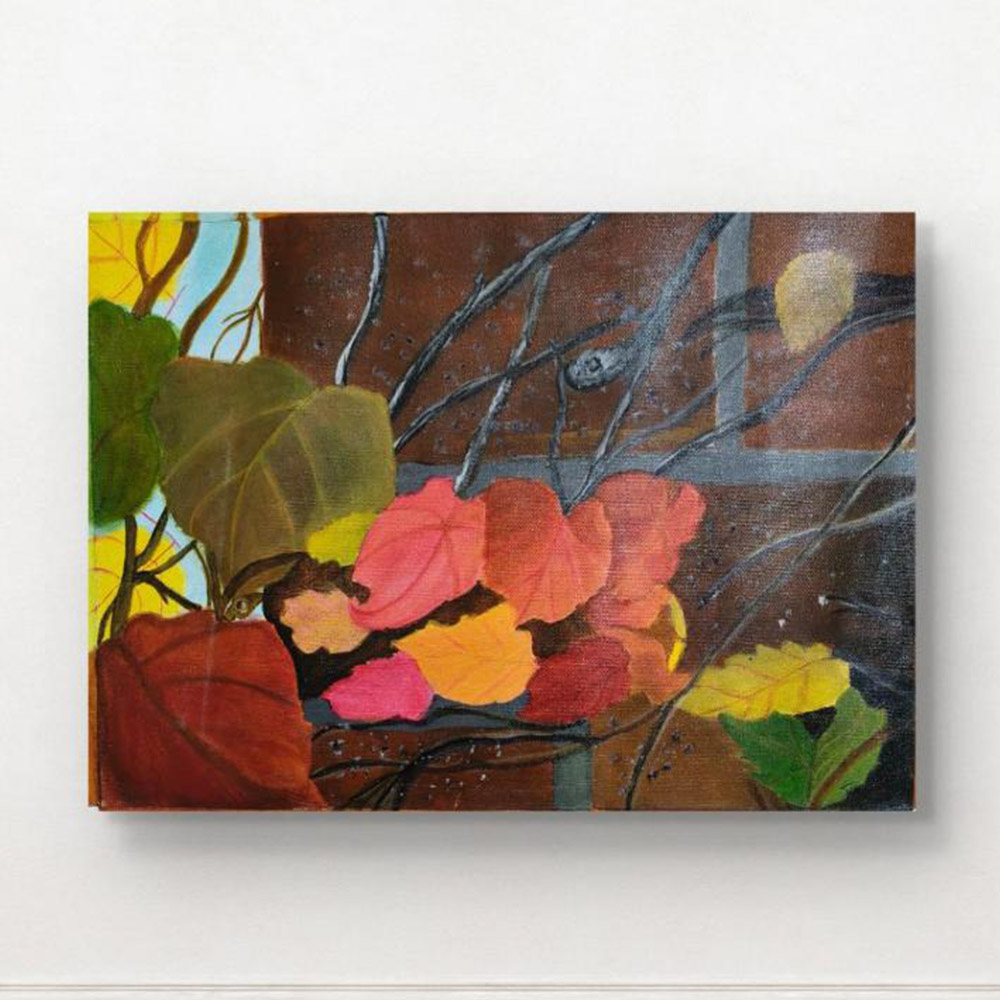 • Handpainted Autumn Foliage Burst with Warm Hues