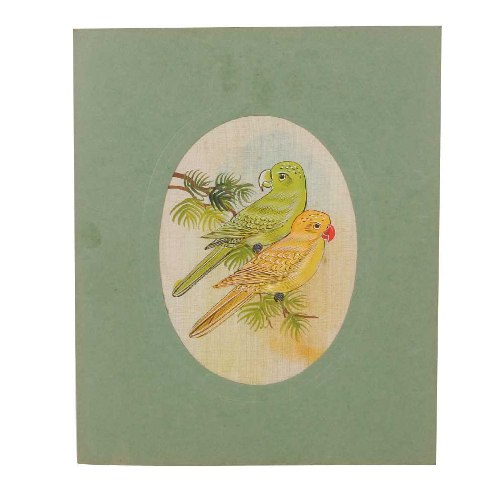 Colorful Parrot Birds Painting Handmade Water Color Miniature Ethnic Folk Décor. Makes Excellent Gift Item and Collection piece.