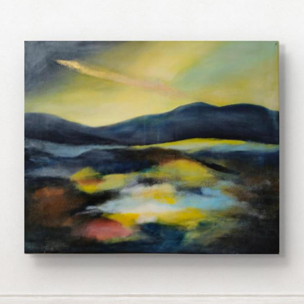 • Handpainted Dreamy Twilight Hills with Luminous Reflections