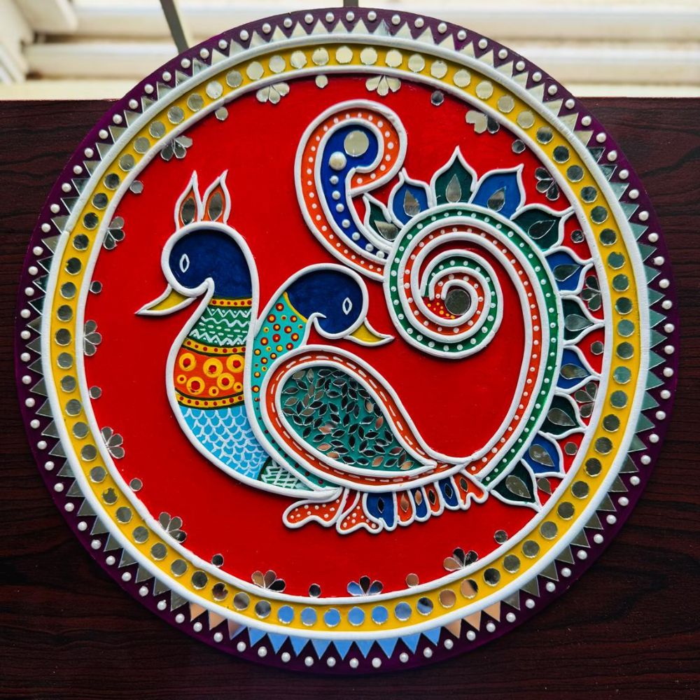 • Handpainted Peacock Motif Wall Plate