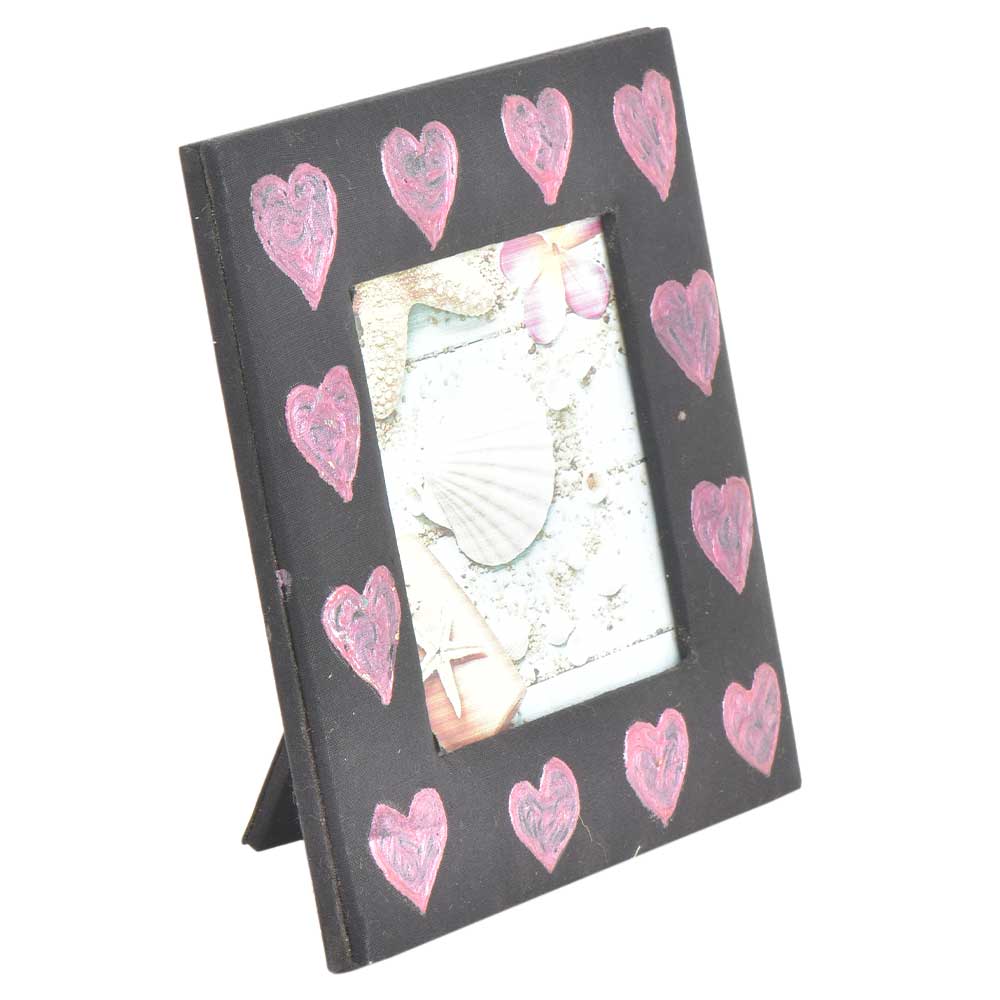 Handpainted Pink Hearts Photo Frame is made of MDF and wood has a glass front ,back boaard and a stand .These photo frames are ideally suited for table decoration, bedside or hanging on the wall either vertical or in horizontal manner. The frame has a very rustic look to it Crafted with style and durability it suits any kind of interiors home or office. Ideal gift for any occasion whether anniversary, birthday or valentine's day.