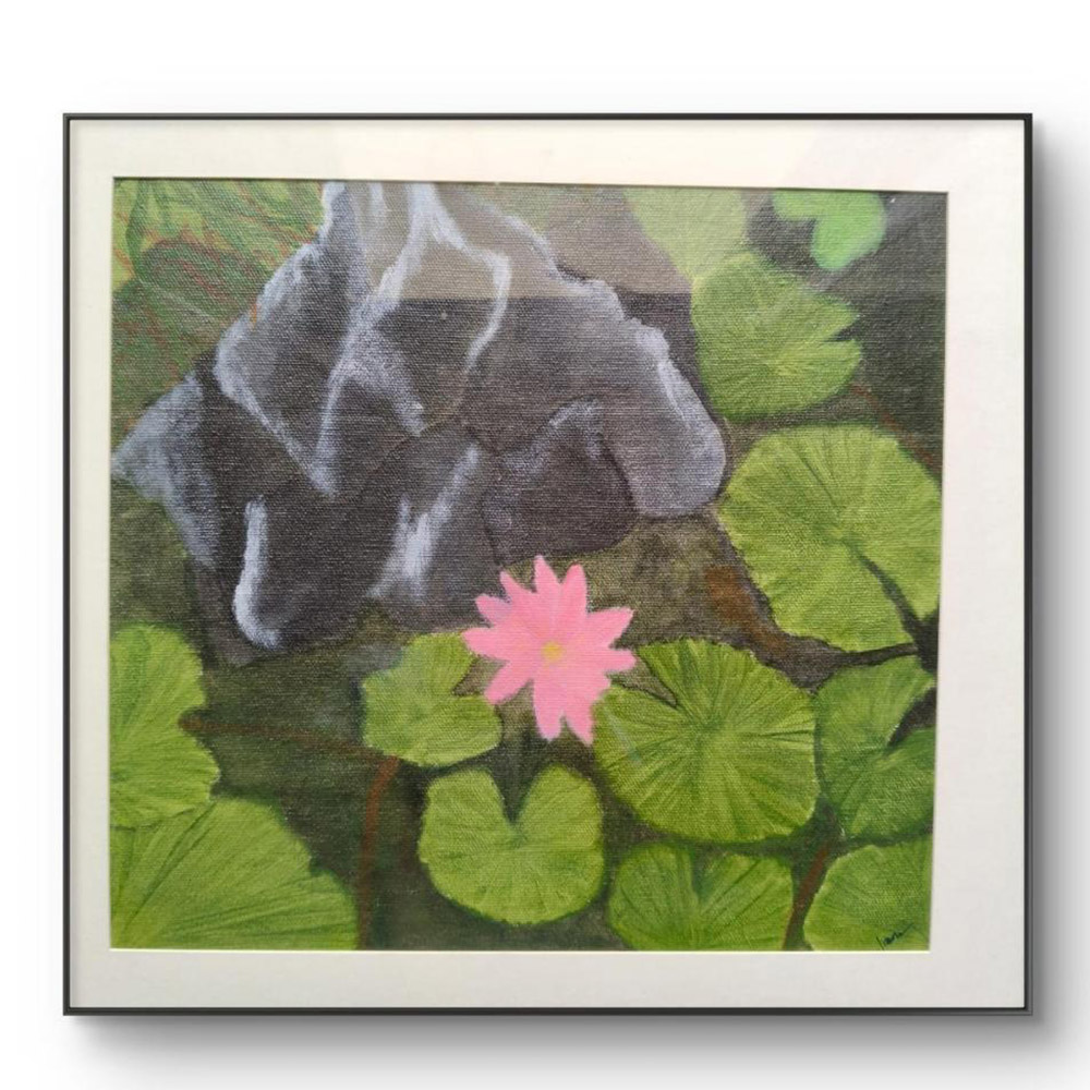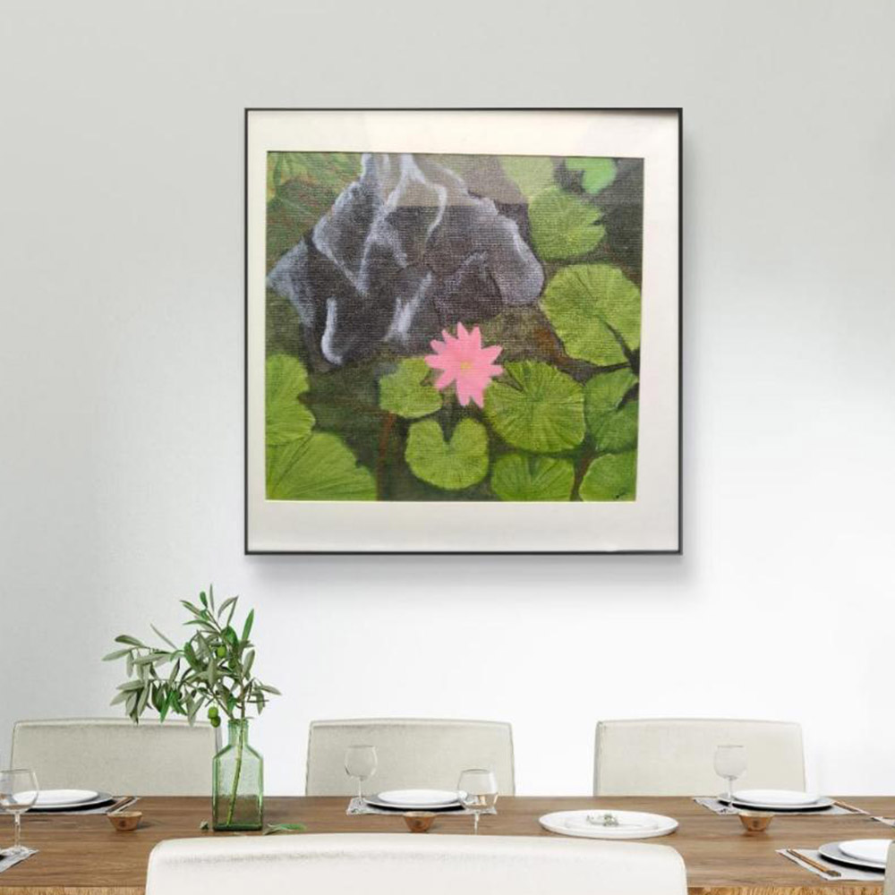 • Handpainted Pink Lotus Amid Lush Green Leaves