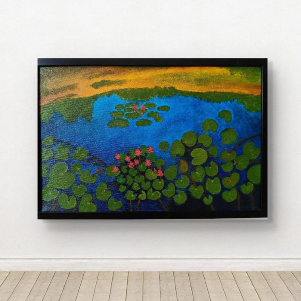 Handpainted Tranquil Lily Pond with Blooming Water Lilies
