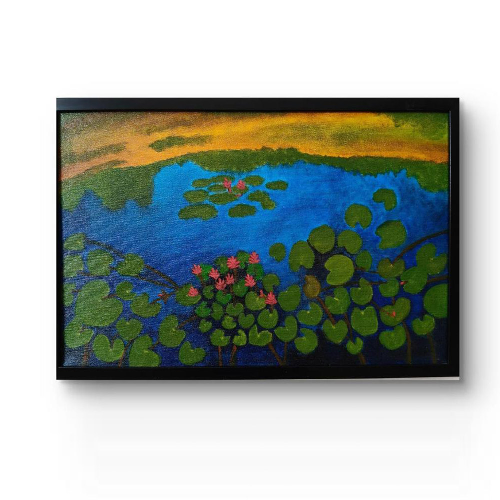 • Handpainted Tranquil Lily Pond with Blooming Water Lilies