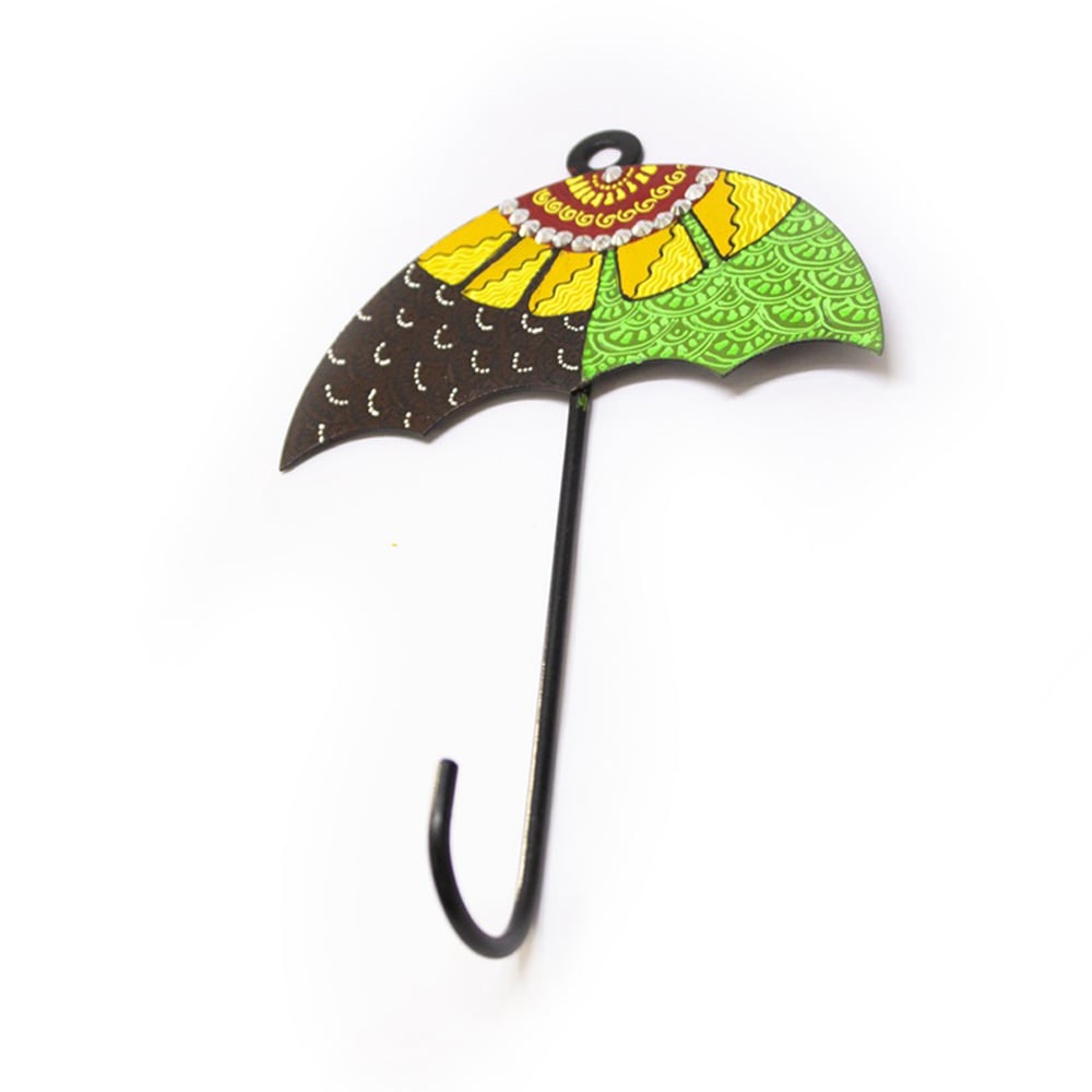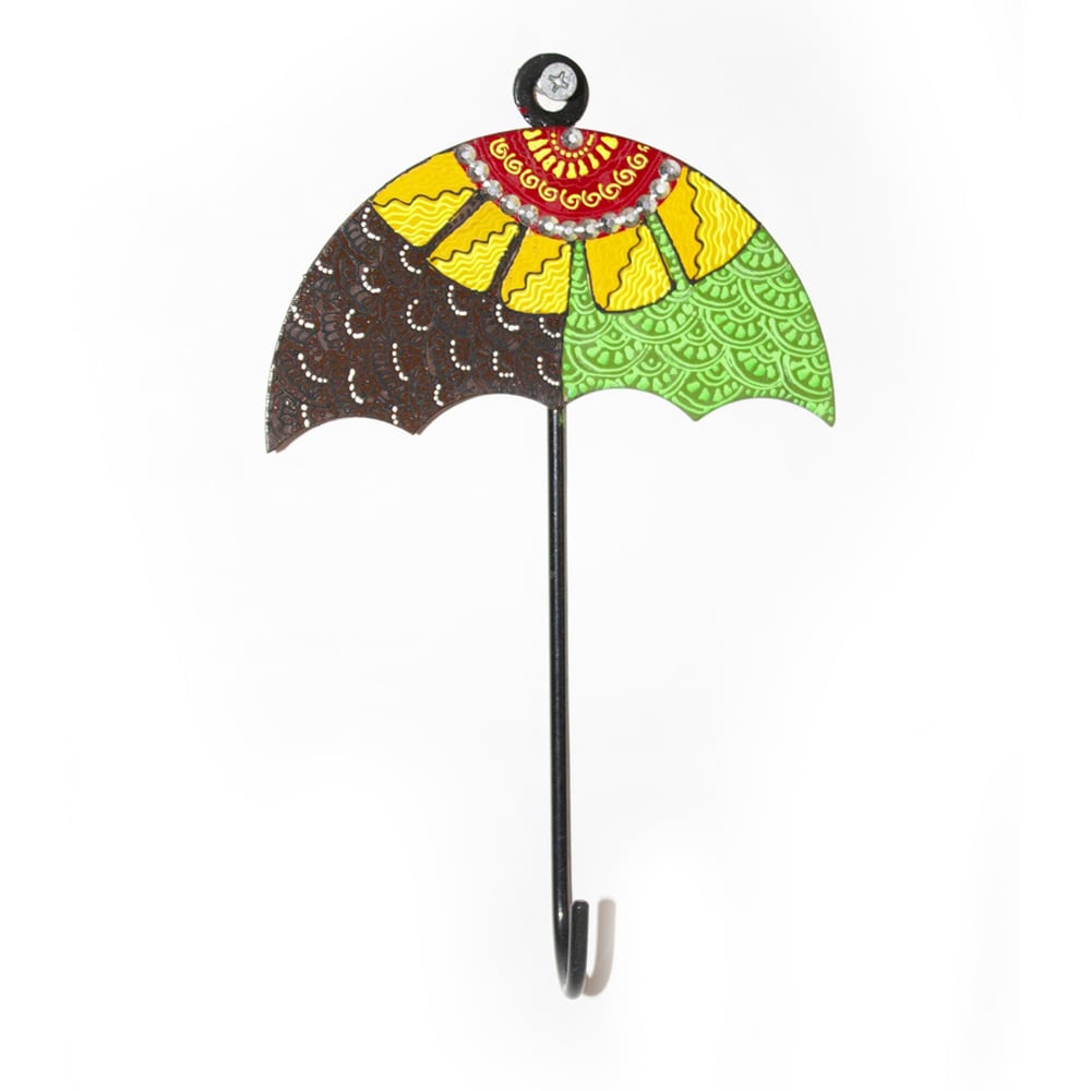 • Handpainted Umbrella Design Iron Wall Hook with Traditional Indian Motifs