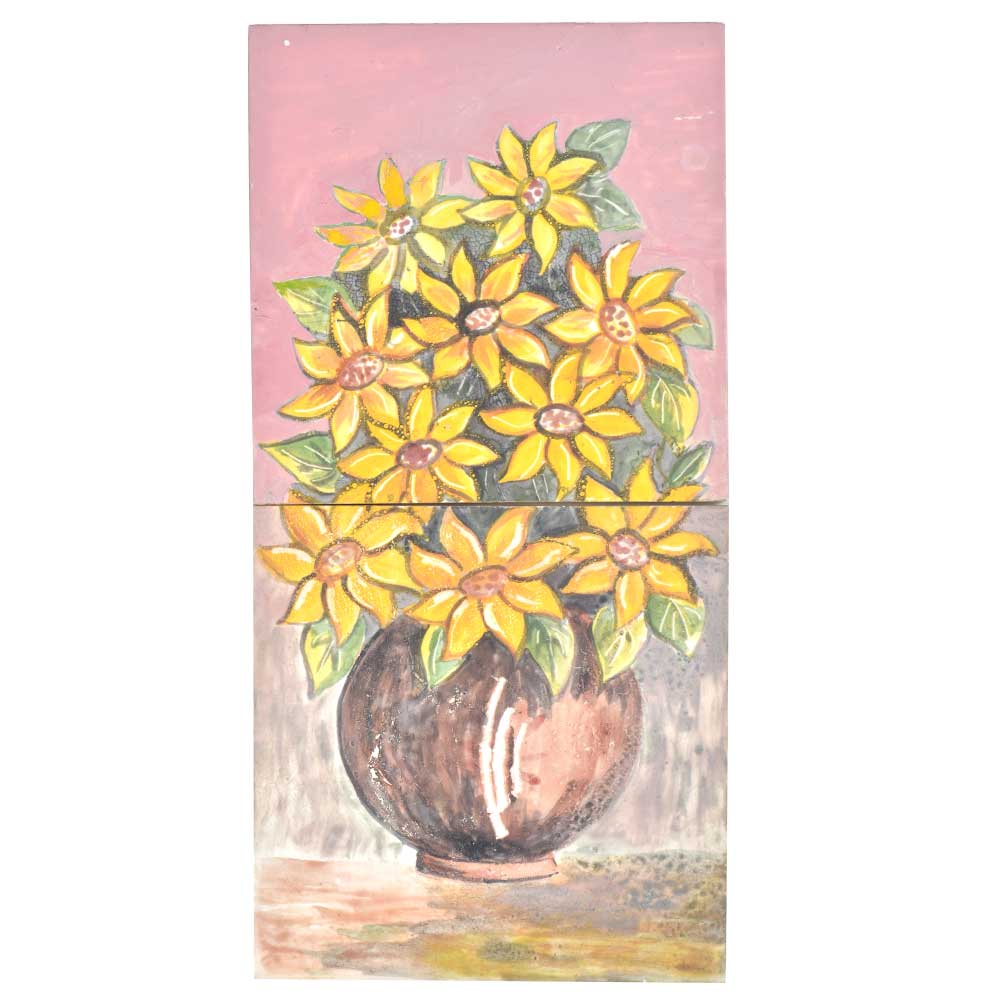 Handpainted Vase Yellow Flowers Ceramic Tile
