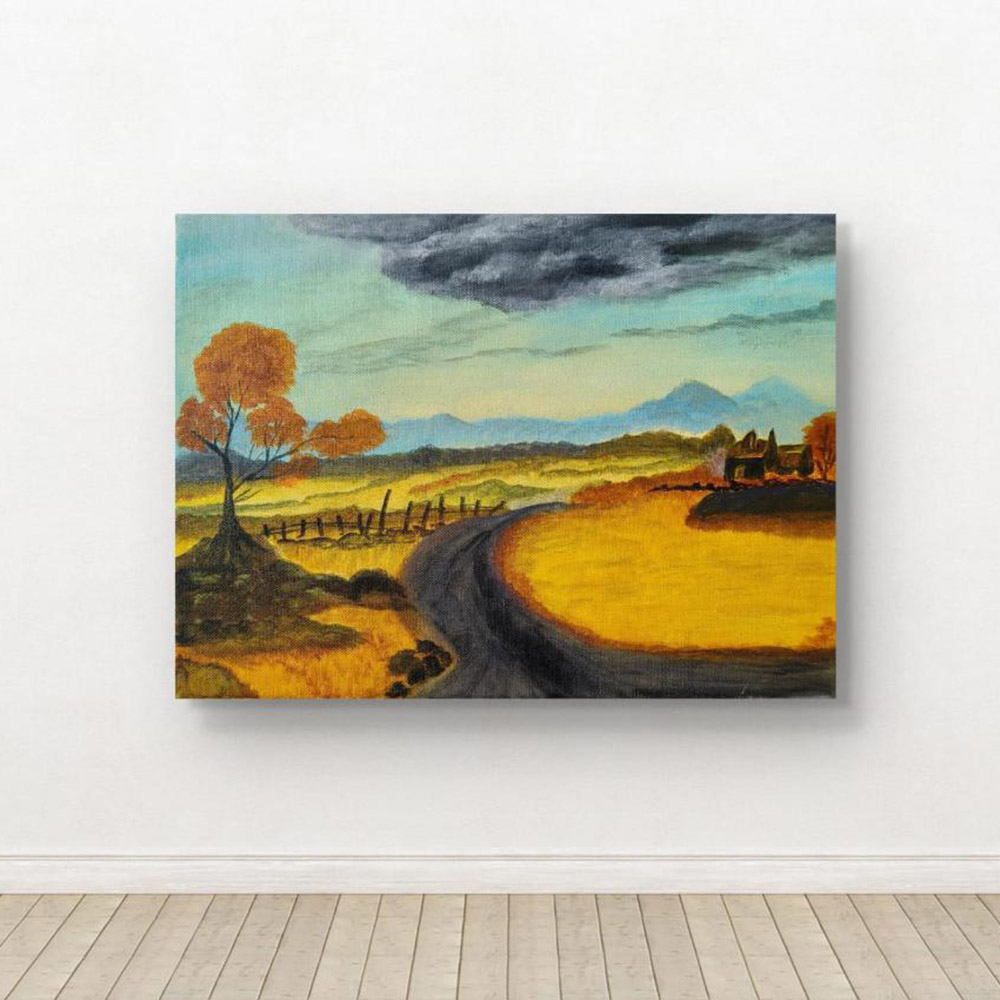 • Handpainted Winding Country Road Through Golden Fields