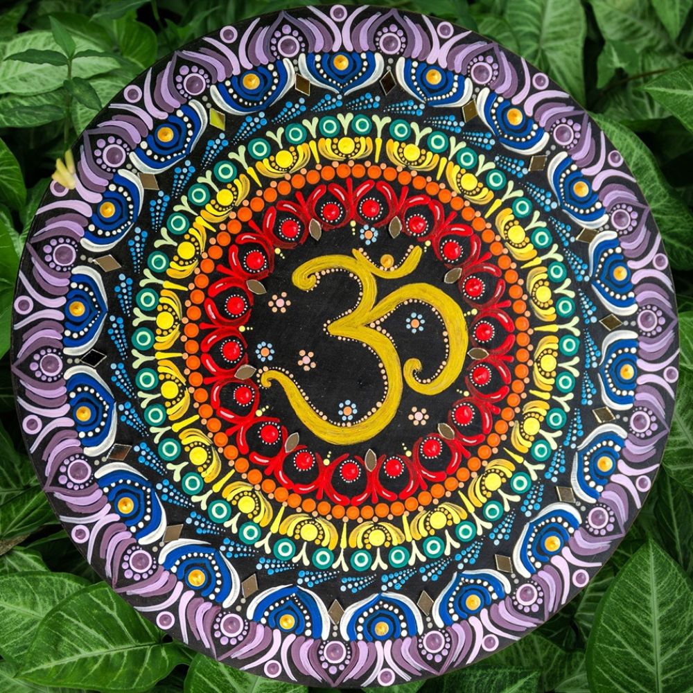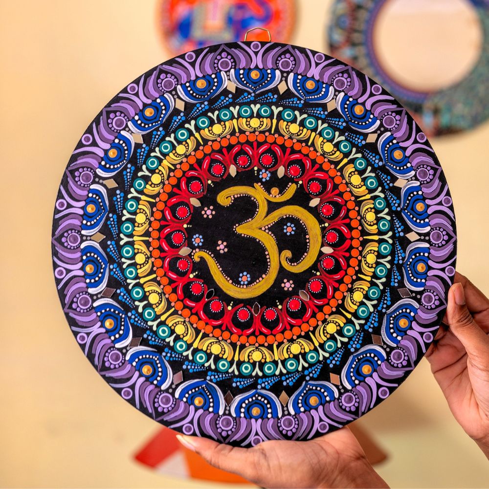 - Central Om motif enriched with decorative mirror work