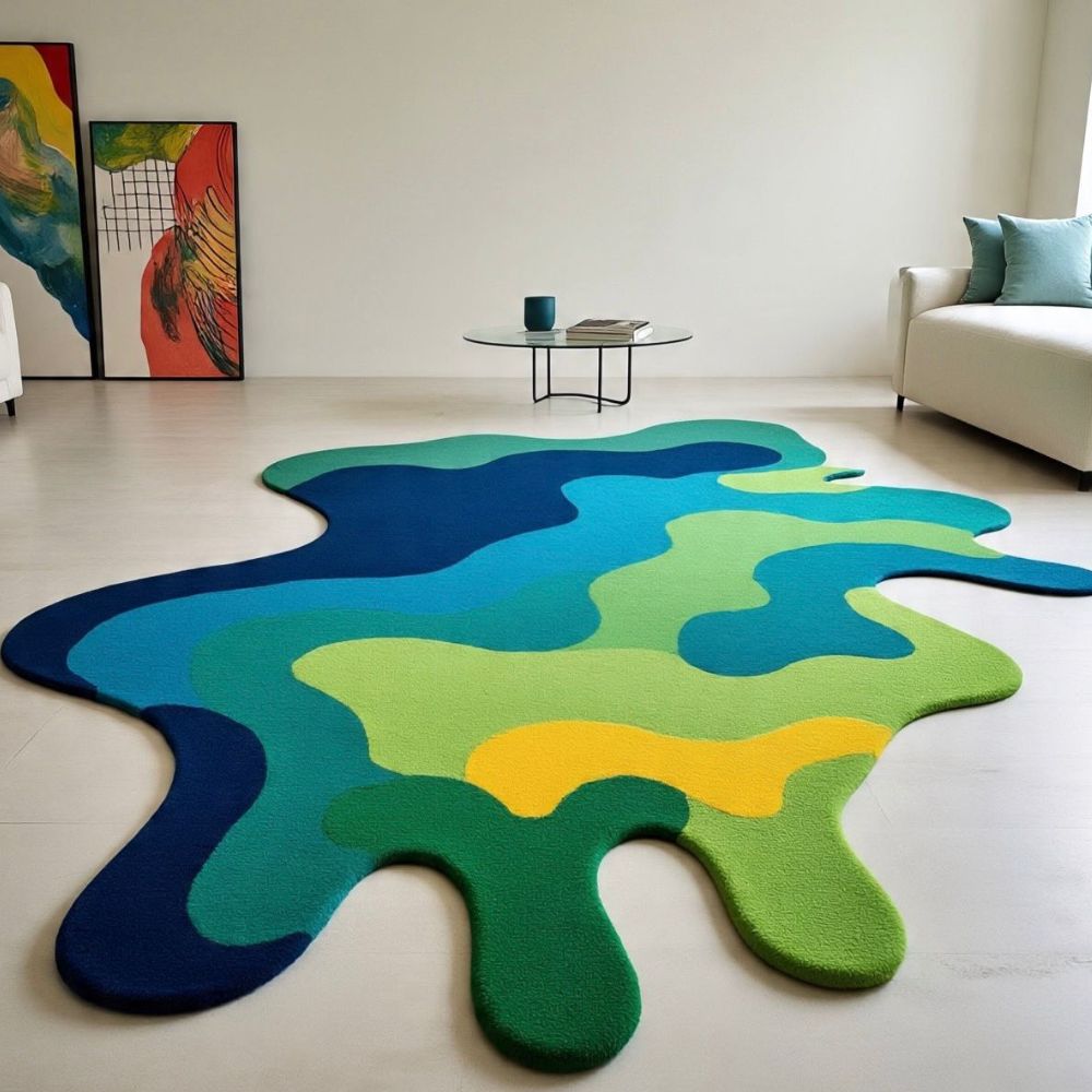 Versatile Uses & Placement for Blue Green Puzzle Rug