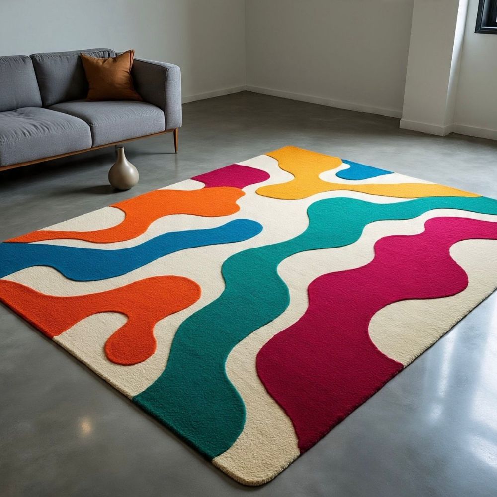 The Playful Waves Color design is modern, crafted from pure wool for a statement rug that enriches any space.