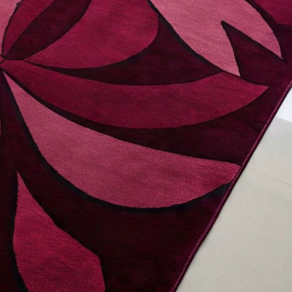 The Purple Petal Swirl design is striking, crafted from pure wool for a statement rug that enriches any space.