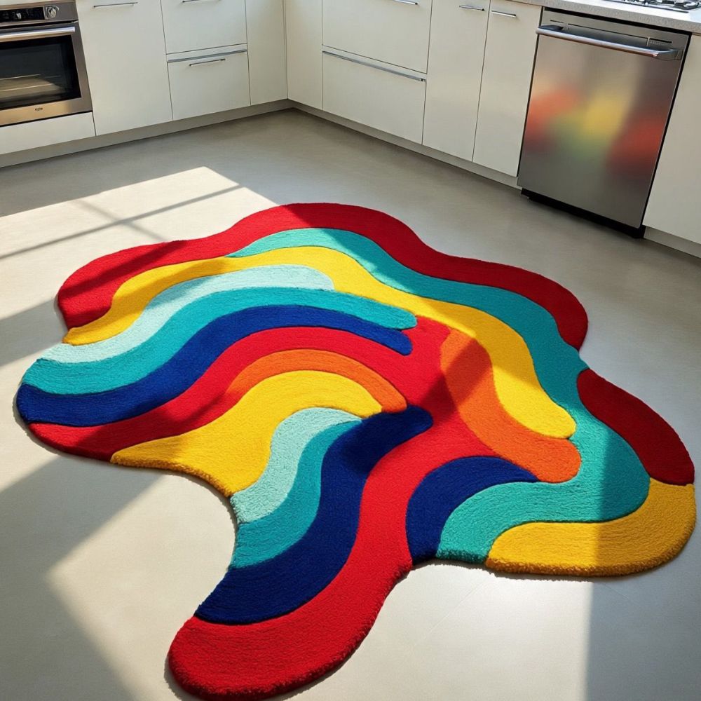 Versatile Uses & Placement for Rainbow Wave Blob Rug